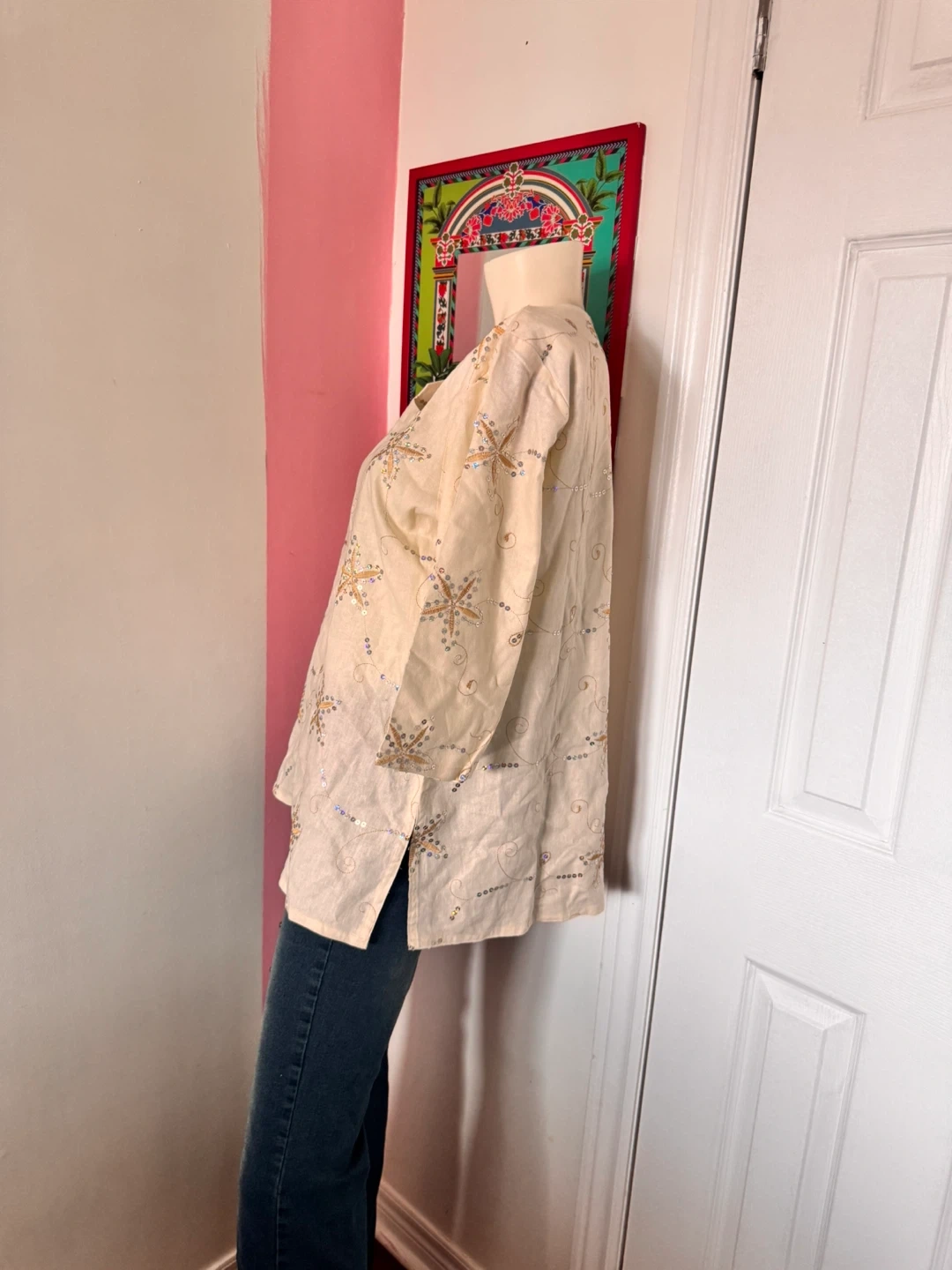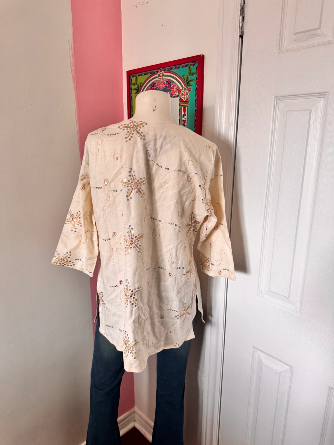 Cream Sequin Embellished Top
