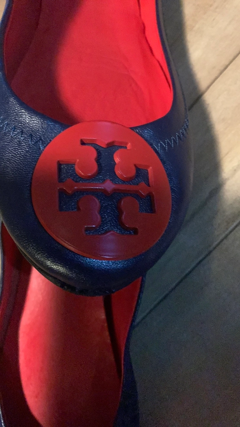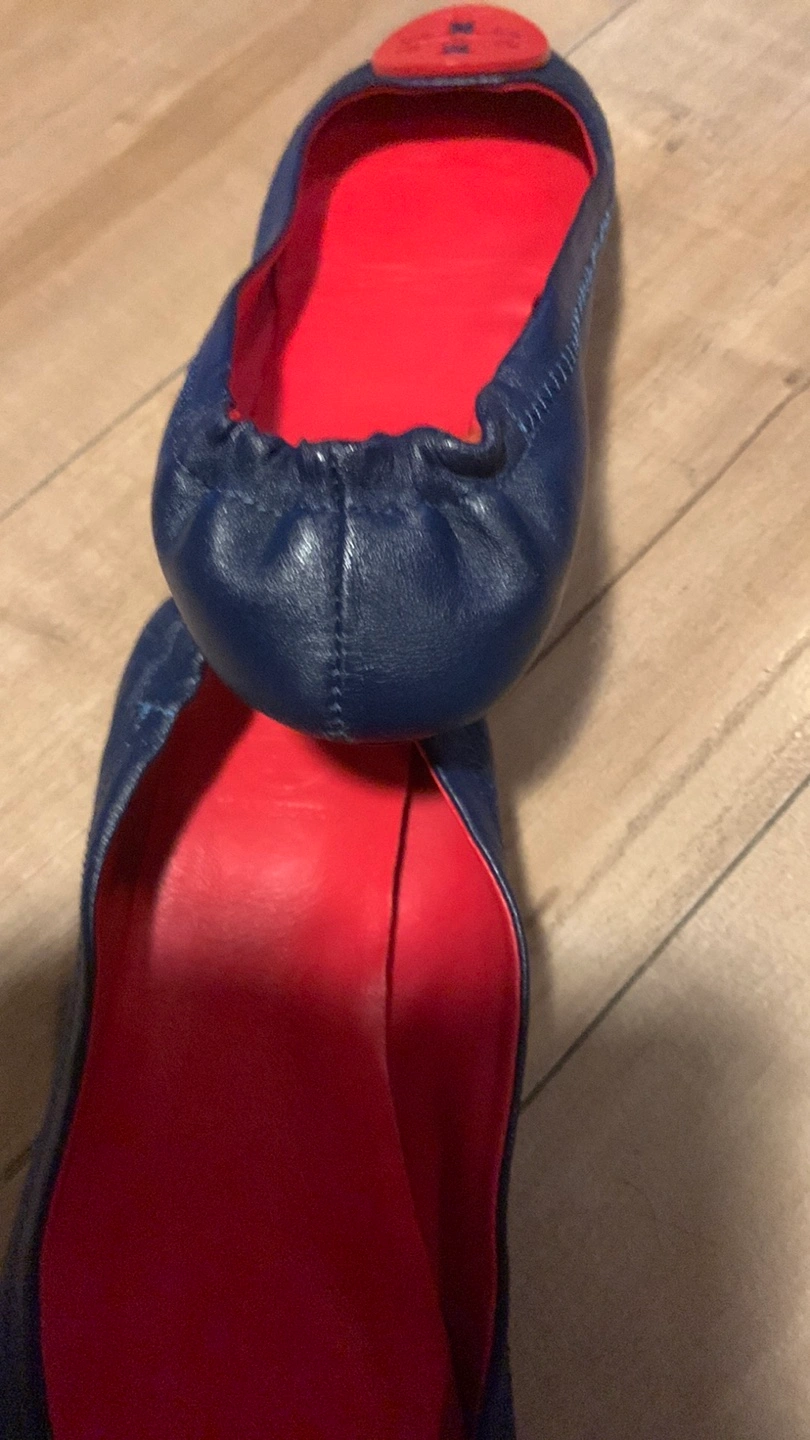 Cute Tory Burch ballet flats in a striking blue and red colour combo! They're in good used condition and ready for a new home. Size 7.5.