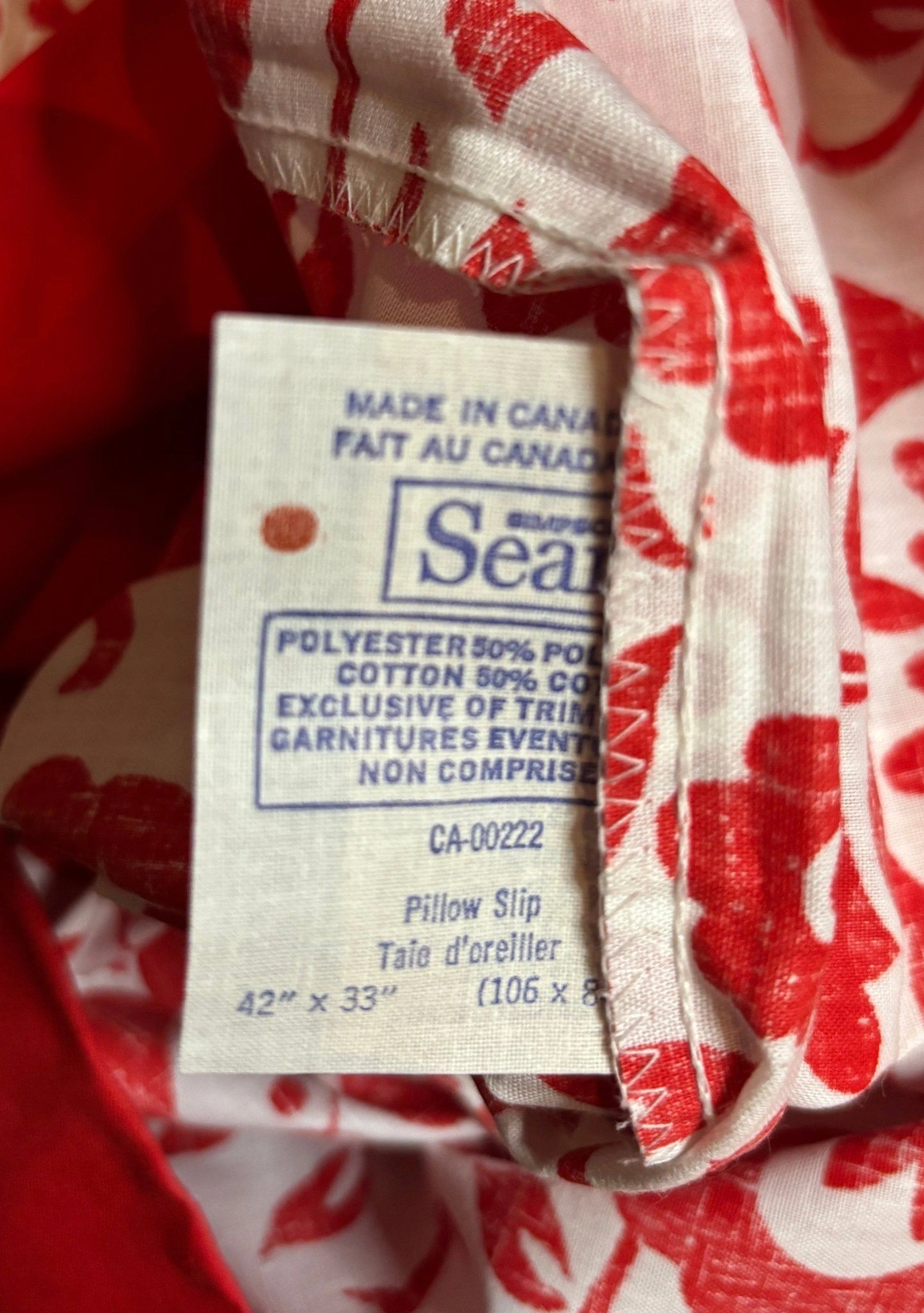 23Transform your bedroom with some mid century modern charm with these fantastic Sears Canada red paisley vintage queen-size pillowcases. With a wonderful and vibrant red paisley pattern, these retro pillowcases capture the iconic style of the 1970s and 1980s. Made from a 50/50 blend of cotton and polyester, these pillowcases combine comfort and durability, making them perfect for daily use or as a colorful accent to your bedroom. Whether you need these to impress a sleepover guest, adding them to your own boudoir, or just need that unique piece to set your room off, then look no further than these beautiful red paisley pillowcases. These Sears Canada Red Paisley Vintage Queen Size Pillowcases measure approximately 33x21 inches or 84x51cm as they lay flat. Although not in their original packaging, these are brand new, never used. Local pickup is in Etobicoke near Islington and The Westway. We offer shipping and local delivery for this item. Please send a message about availability and cost associated with these respective services. Alternately, if you wish to pay by credit card or Paypal and have it shipped, you can order it on our website by copying and pasting this link into your browser: https://hljathome.com/products/sears-canada-red-paisly-vintage-queen-size-pillowcases