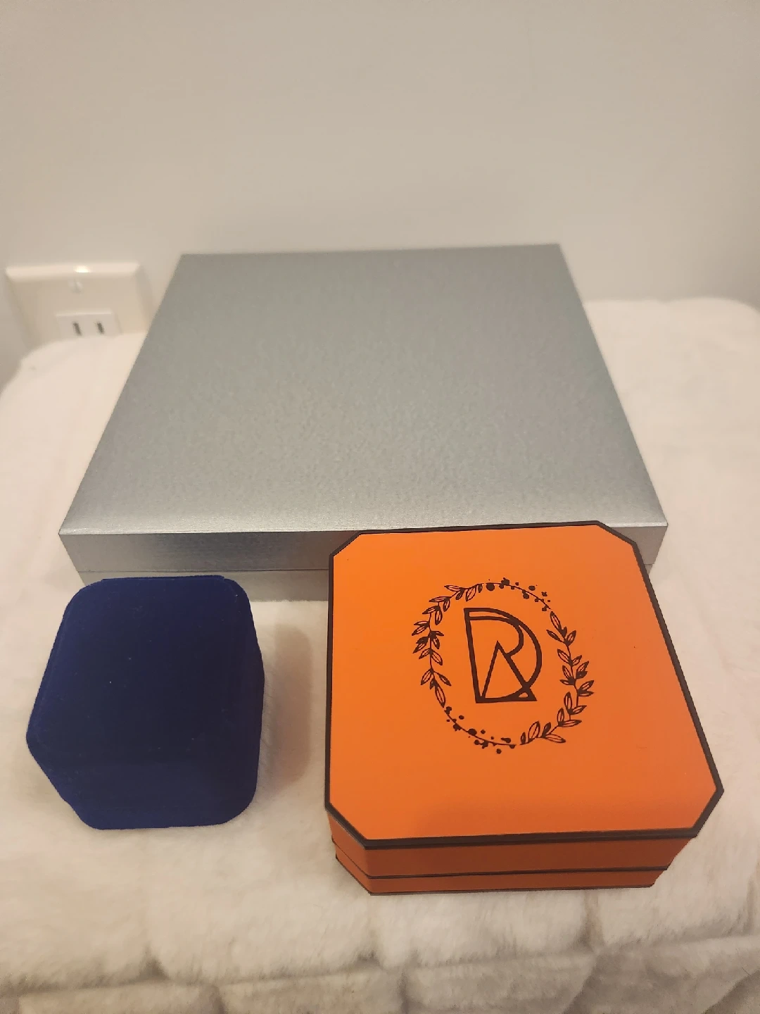 New orange box and a blue velvet ring box and large silver box. for necklace, bracelet and ring. for gifting or store your jewelry.