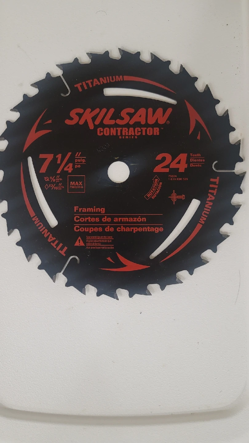 Selling a Skilsaw 7 1/4" saw blade from the Contractor Series. It's made with titanium and has 24 teeth. Perfect for framing!