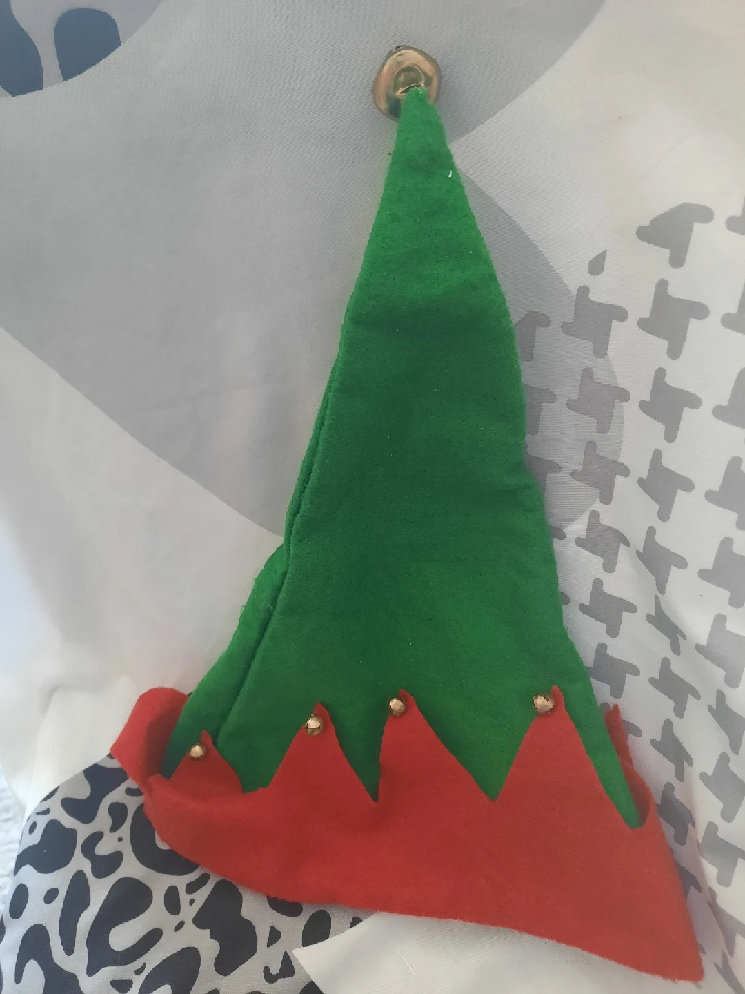 This is an elf hat, a type of costume headwear often associated with Christmas and holiday celebrations.