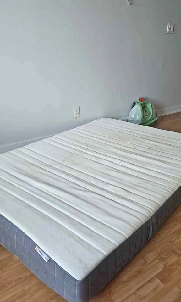 Medium firm old IKEA morgedal mattress. Mattress is in good condition. No tear. No smoking, no pet household. Light Water stains on the mattress as shown in attached pics. Don't come with a bed frame. Pick up only in Scarborough near STC.