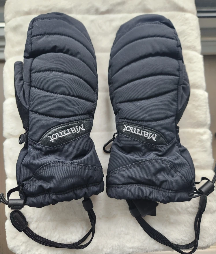 These Marmot mittens are perfect for keeping your hands warm! They are black and made of 100% polyester. Size XS.