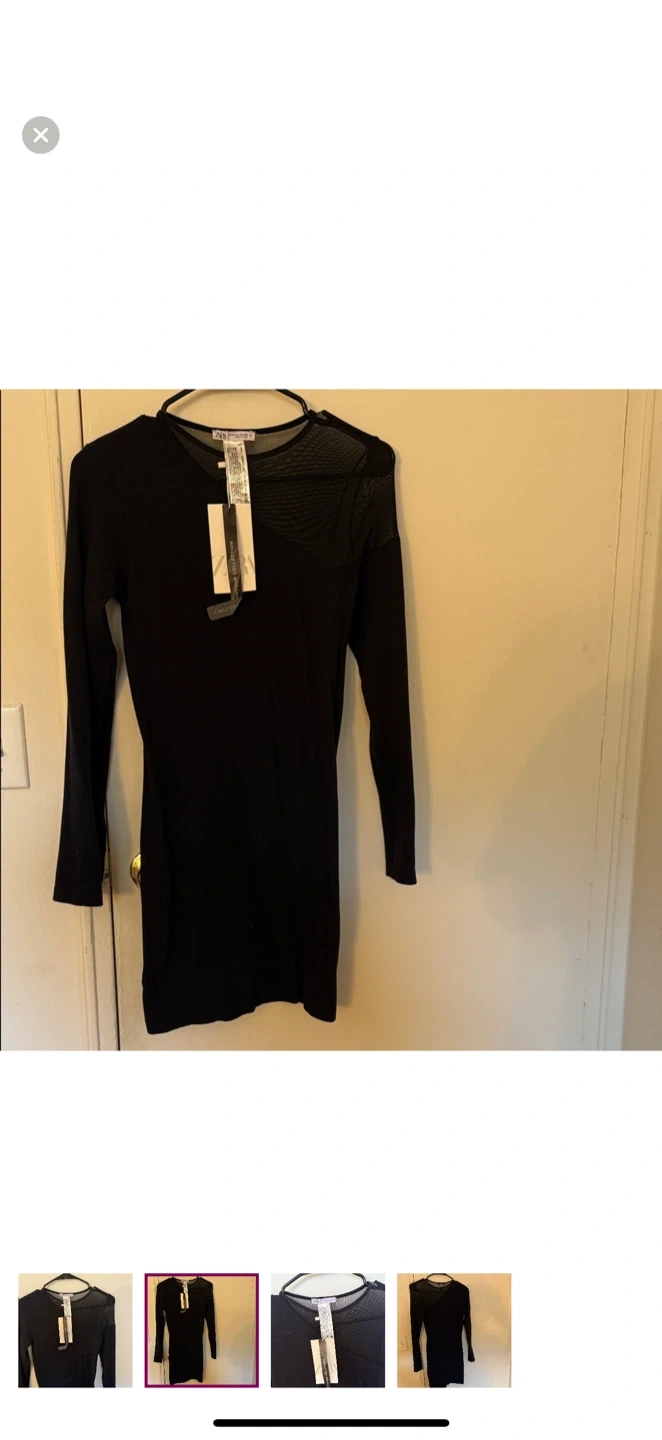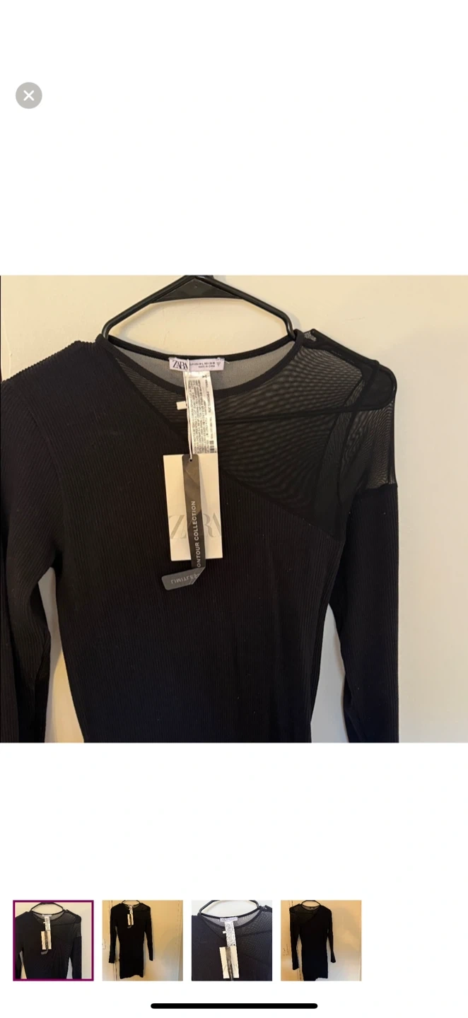 This is a Zara black ribbed mini dress in size S. It's part of the Limited Edition Contour Collection and has a unique mesh detail. Perfect for a night out!