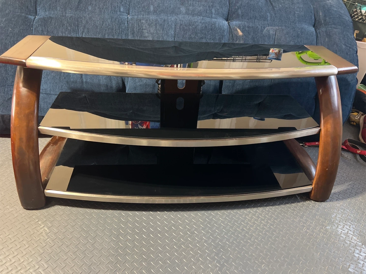 Selling a stylish wood and glass TV stand! It's in great shape and would look great in any living room. It has three shelves for media devices and storage.