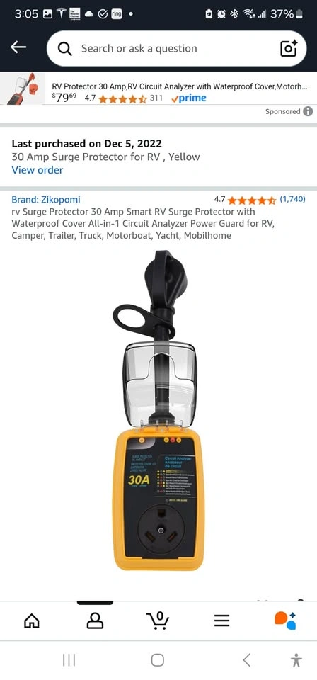 RV Surge Protector 30 Amp Smart RV Surge Protector with Waterproof Cover All-in-1 Circuit Analyzer Power Guard for RV, Camper, Trailer, Truck, Motorboat, Yacht, Mobilhome. Reliable Surge Protector Circuit: 3 level complementary Surge Protector Circuit which composed of TVS, MOV (metal oxide varistor), GDT (gas discharge tube), with minimum 2100J energy absorbing capacity, could protect your devices much more quickly and reliably than other 1 level MOV(metal oxide varistor) Surge Protection Circuits. Power Guard: Diagnostic LED, open circuit, neutral open and reverse polarity detection, miswired pedestal indication, overvoltage fault indicator. Designed for outdoor use, weatherproof, all-weather shield mounting. All-weather design: This surge protector was designed with a waterproof cover that protects the circuit from rain, wind, and sandstorms. The cover details are beautifully designed to reduce the risk of short circuits or fires. Designed with Easy To Use Handles: Rugged pull handle, locking bracket, tough lexan housing, brighter 3-color LED Indicators. Made of high quality rubber and pure copper material, the surge protector must be a great guard for your rv.
