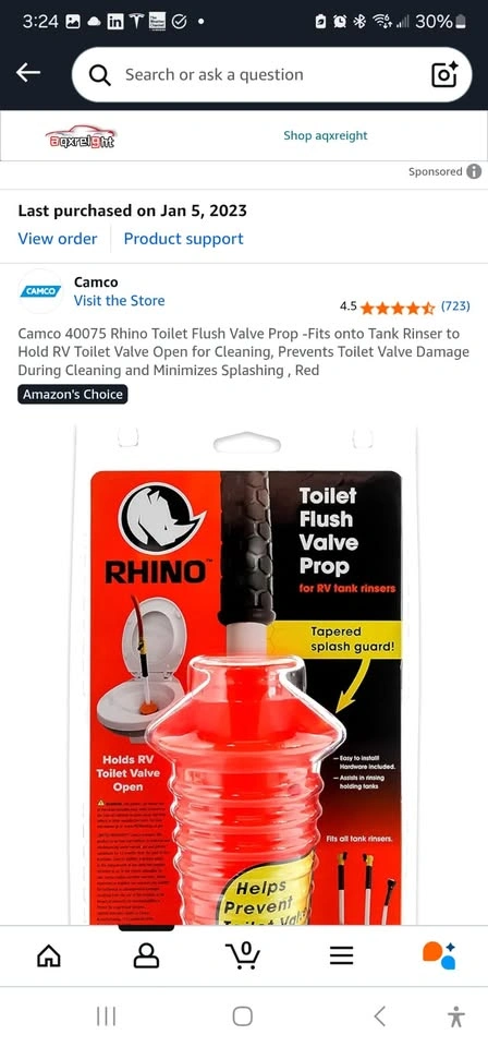 Camco 40075 Rhino Toilet Flush Valve Prop