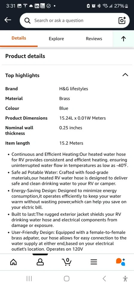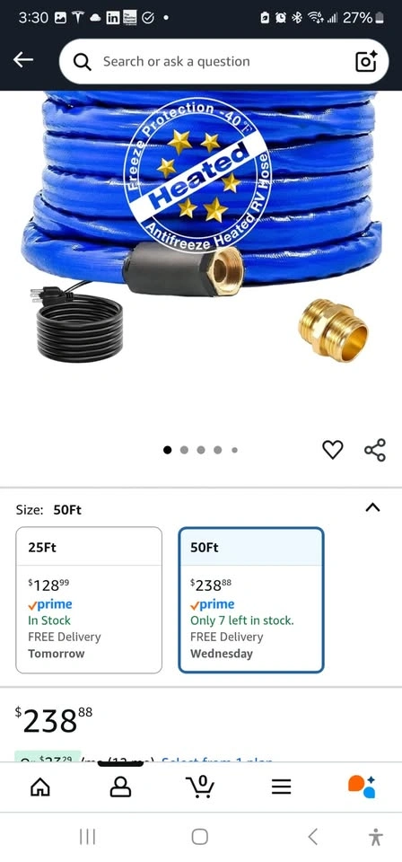 H&G Lifestyles 50ft Heated Water Hose for RV