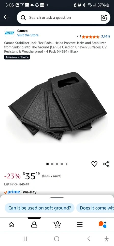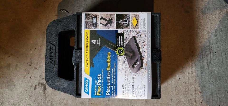The Camco recycled rubber stabilizer jack pads help prevent jacks and stabilizers from sinking into soft ground. The flexible material is great for use on uneven surfaces such as gravel, tree roots and rough earth because it absorbs uneven pressure instead of cracking or wobbling. Recycled rubber stabilizer jack pads are UV resistant, weather-proof, and constructed of recycled materials. Nests perfectly with most stack jacks. Each pad measures 6.5" x 9" x 3/4". set of 4. BNIB