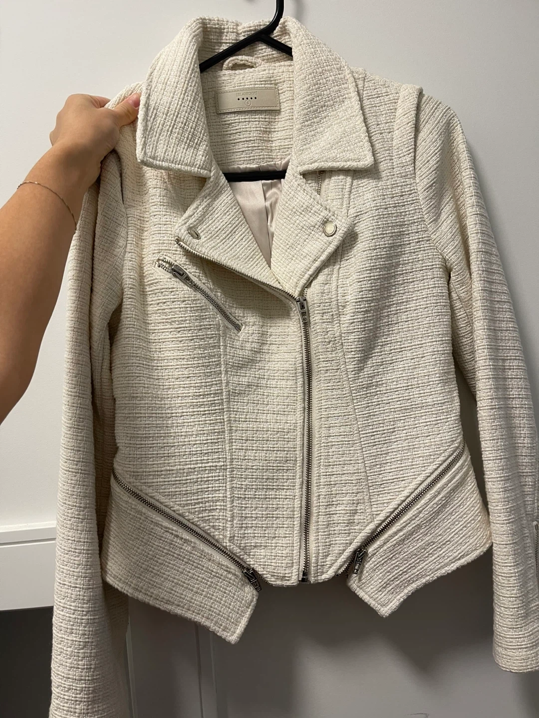 10Selling a Blank NYC ivory tweed moto jacket! It's in great condition and perfect for adding a stylish edge to any outfit. The tweed texture gives it a unique and sophisticated look, while the moto style keeps it modern and cool