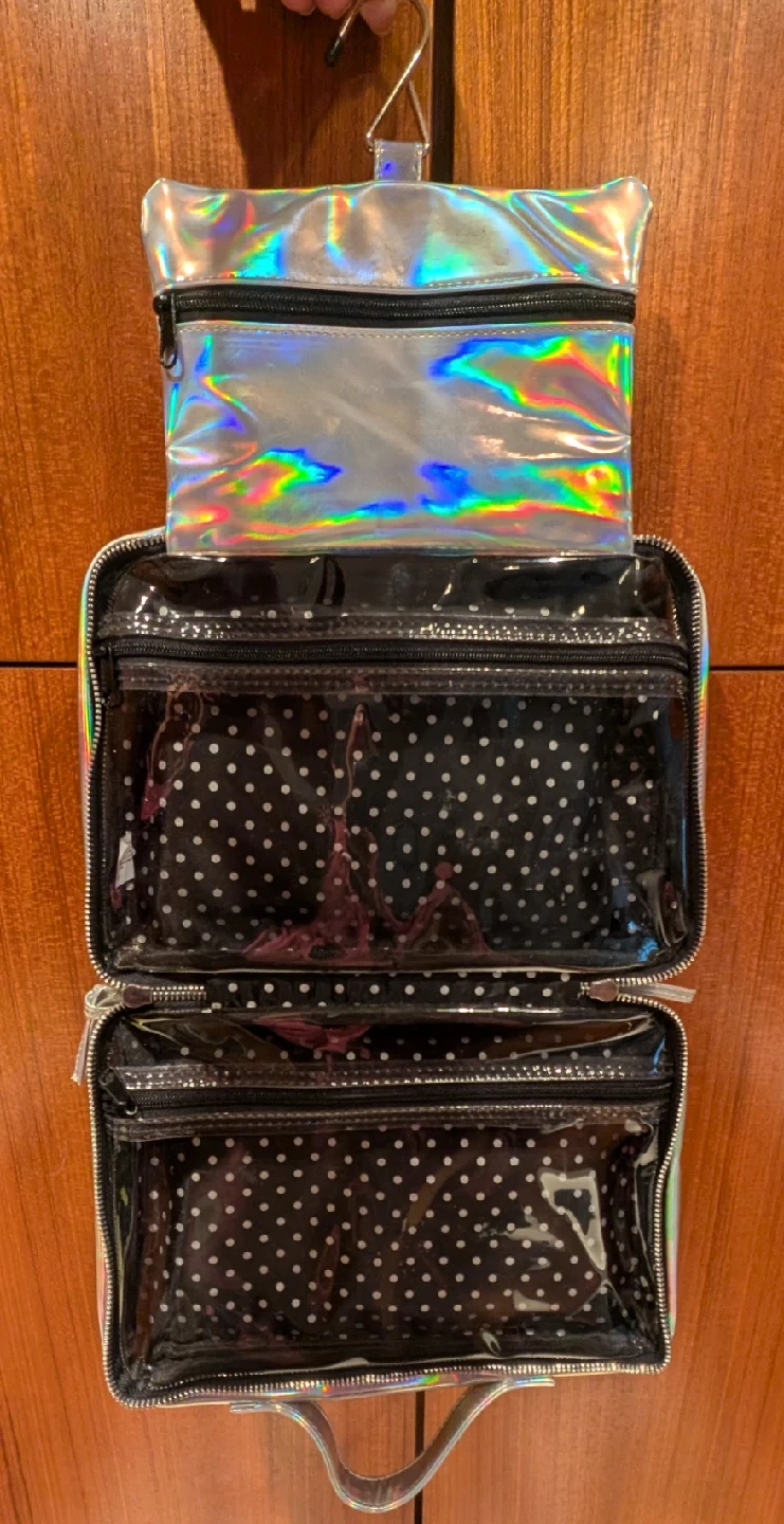 Selling a Victoria's Secret iridescent hanging travel cosmetic bag! It's perfect for keeping all your beauty essentials organized while you're on the go. The bag features a stylish iridescent exterior and a convenient hanging design for easy access to your items