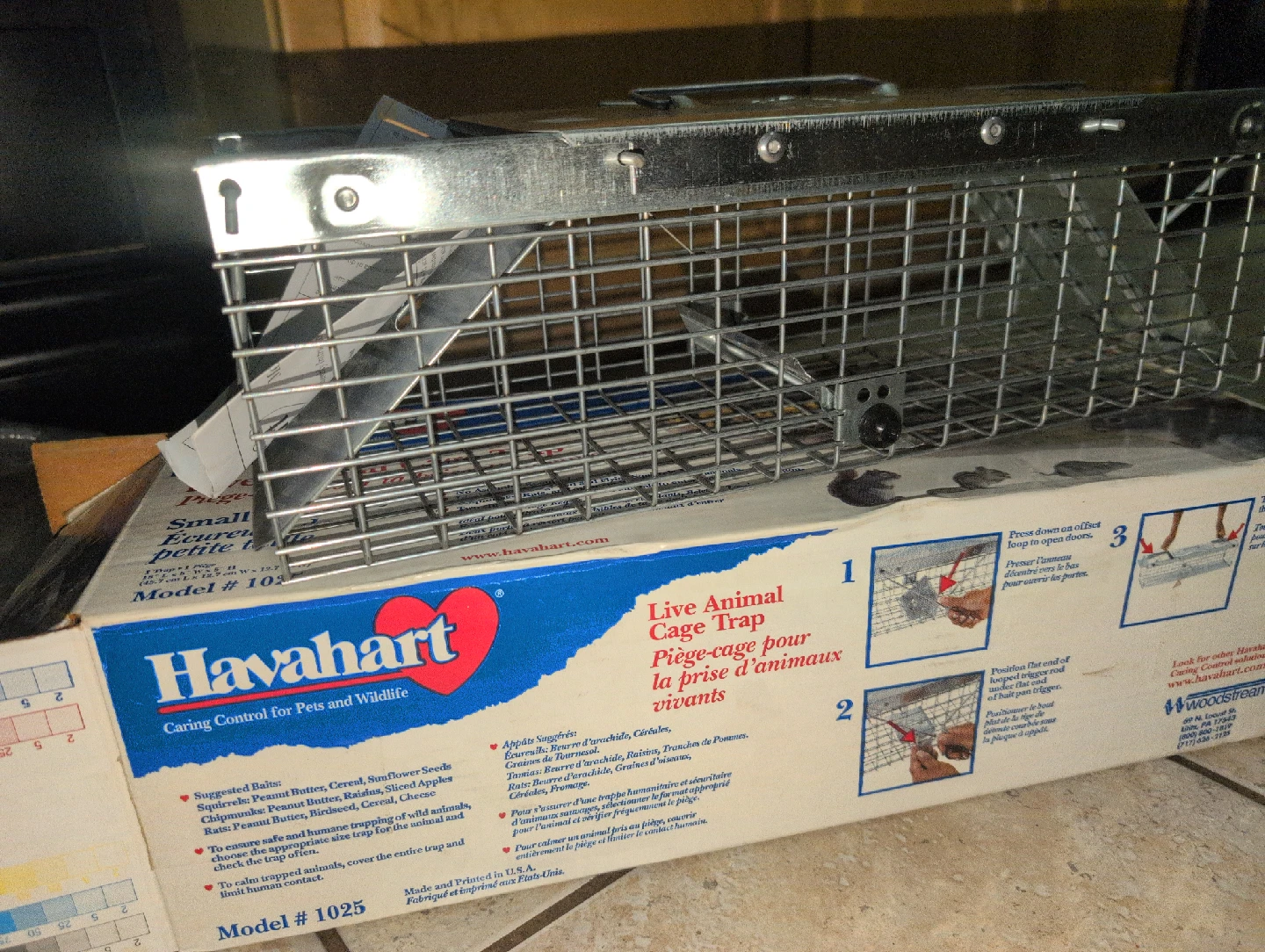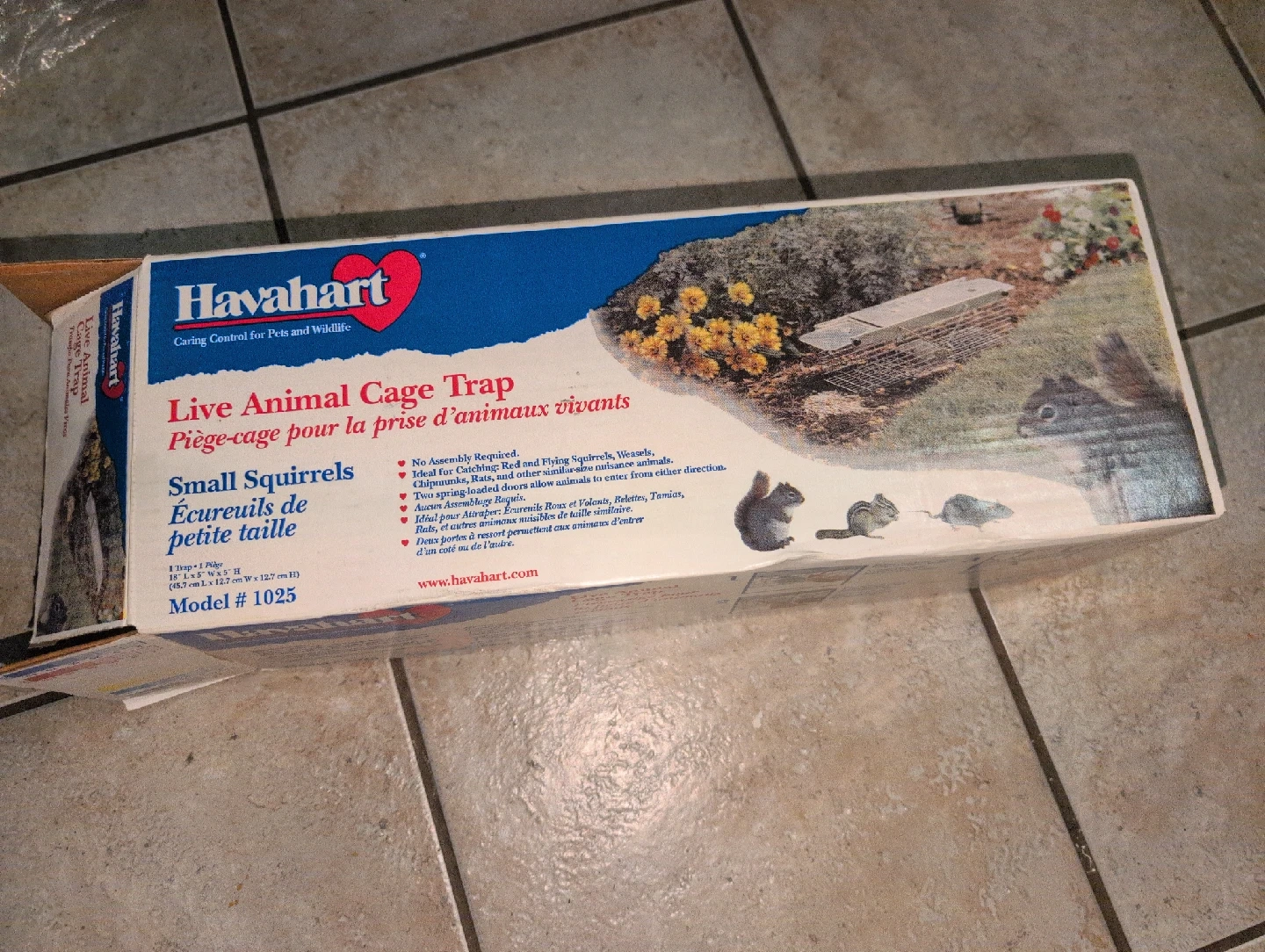Selling a Havahart live animal cage trap, model 1025. It's designed for catching small squirrels and other similar-sized critters. Comes with the original box and assembly instructions!