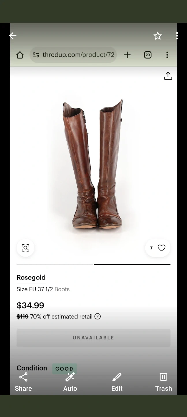 Buy & SellRosegold Leather BootsRosegold Leather Boots$10✨I give deals on bundles✨ Size 37.5ConditionGoodSize37.5WHERE TO MEETWindsor ParkView MapSELLERVeeWindsor Park13218 reviews0 chats·0 favorites·17 views