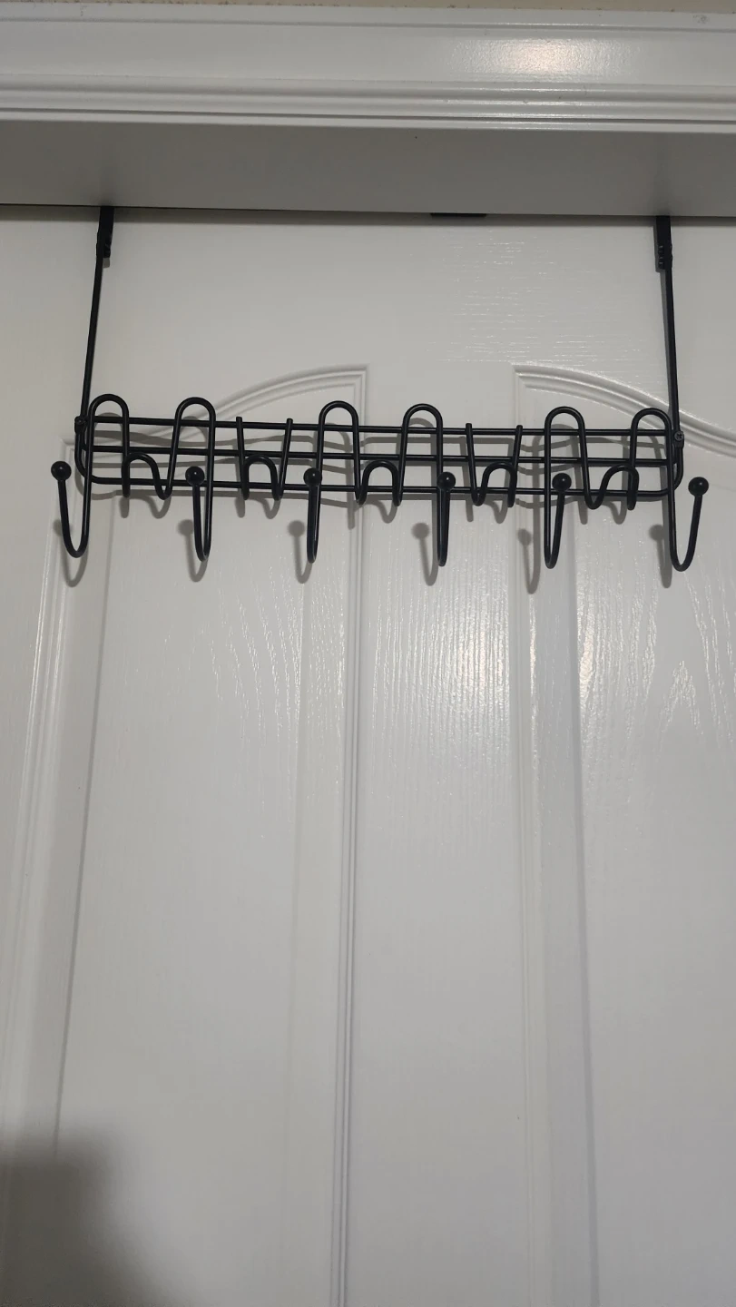 60Here's a handy over-the-door hook rack in black! It's perfect for adding extra hanging space in your closet, bathroom, or entryway. Great for coats, towels, or bags! 2 for $25