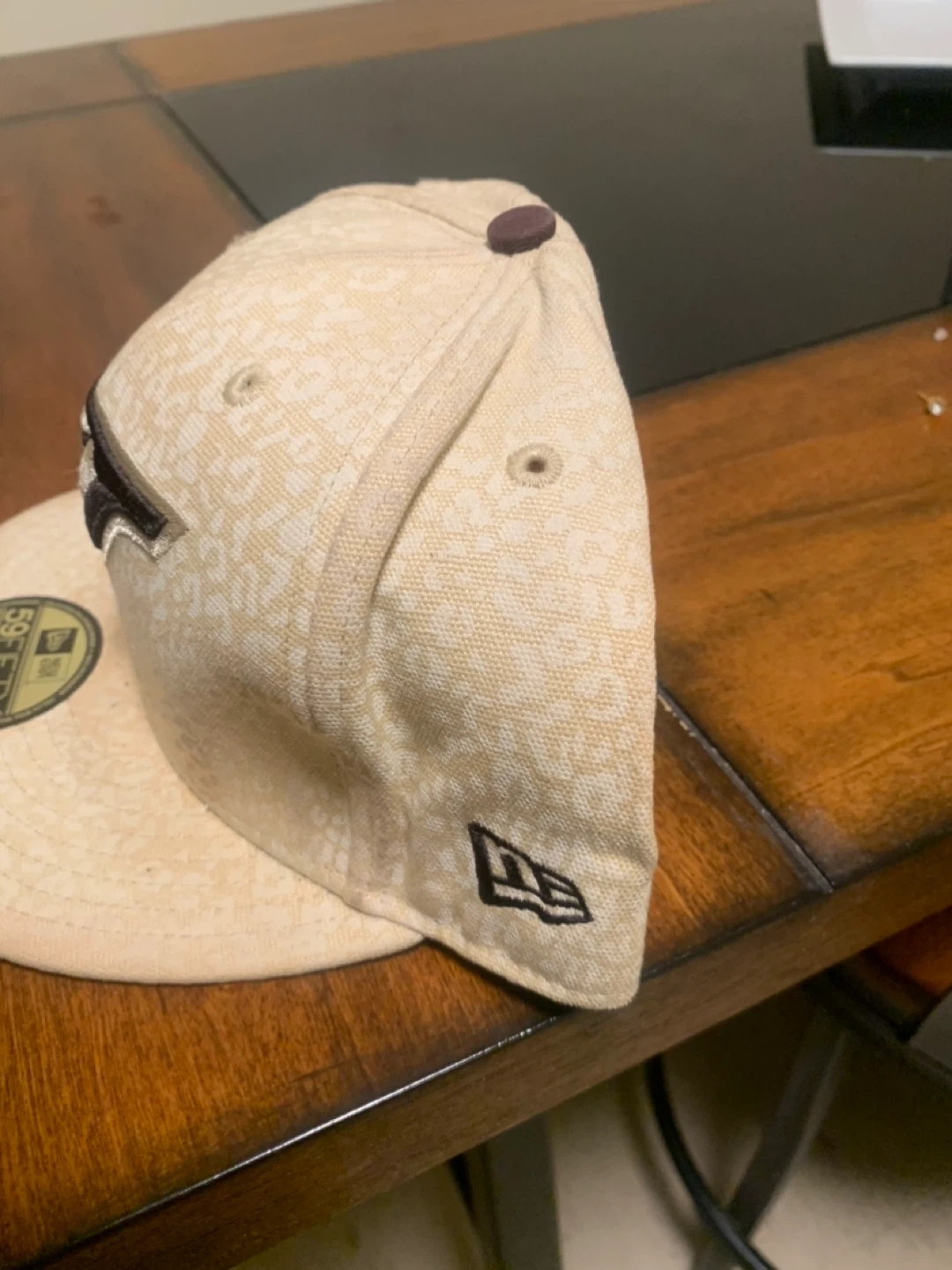 Selling a New Era 59FIFTY fitted cap featuring the Toronto Blue Jays logo. It's a size 7 5/8. The cap has a unique beige colour with a subtle pattern and a brown underbrim. It's in great condition!🥕