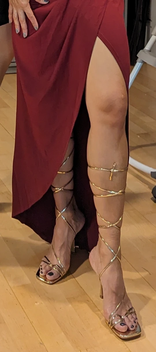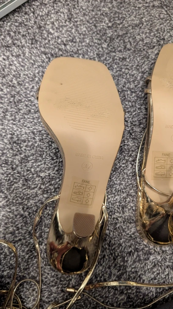Selling a pair of gold heels from RAID. They are a size 7, which is a European size 37. These heels have a unique wraparound design. Perfect for a night out!