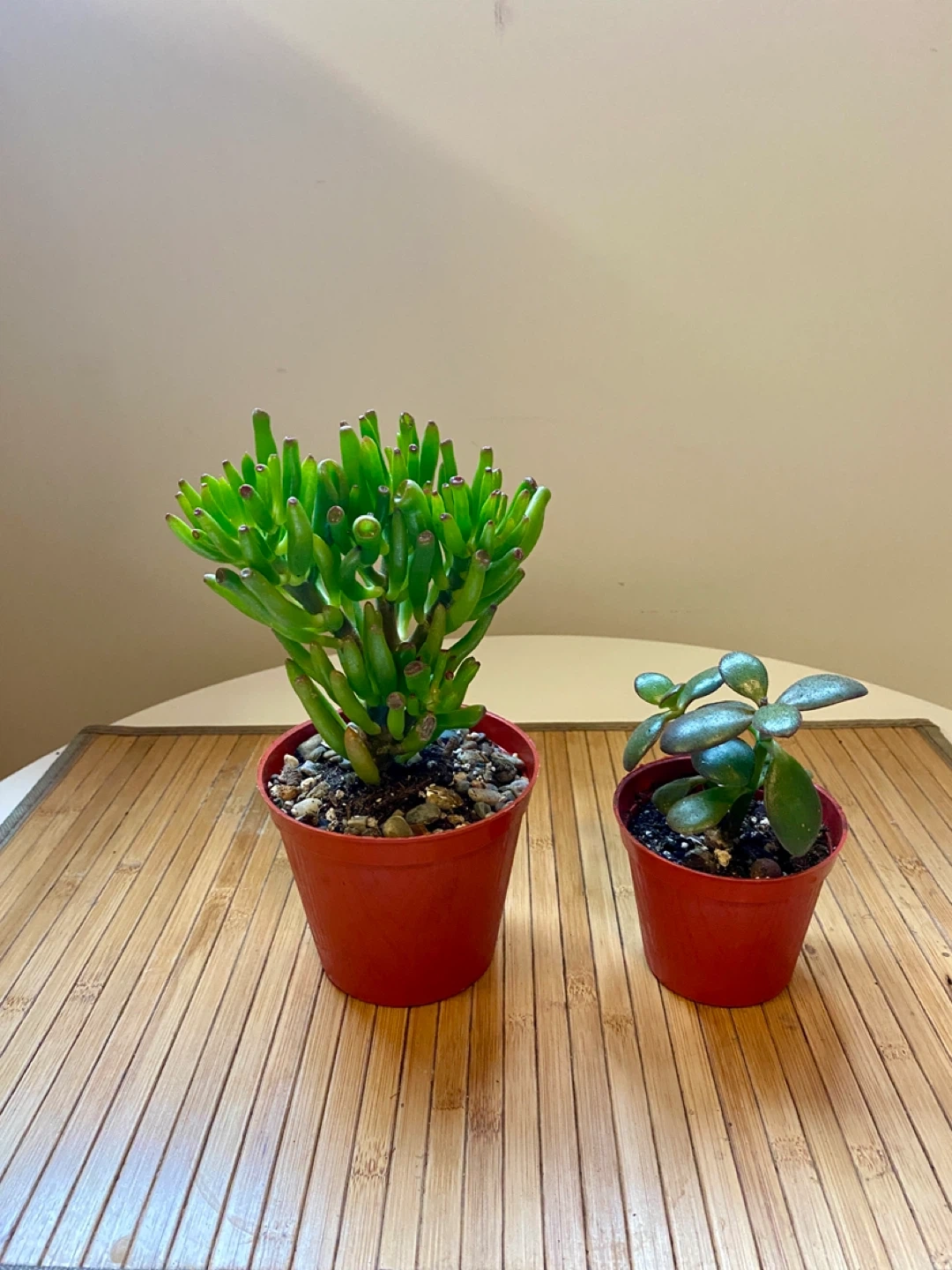 Gollum Jade plus small regular Jade ( Crassula Ovata) both planted in well draining gritty mix.