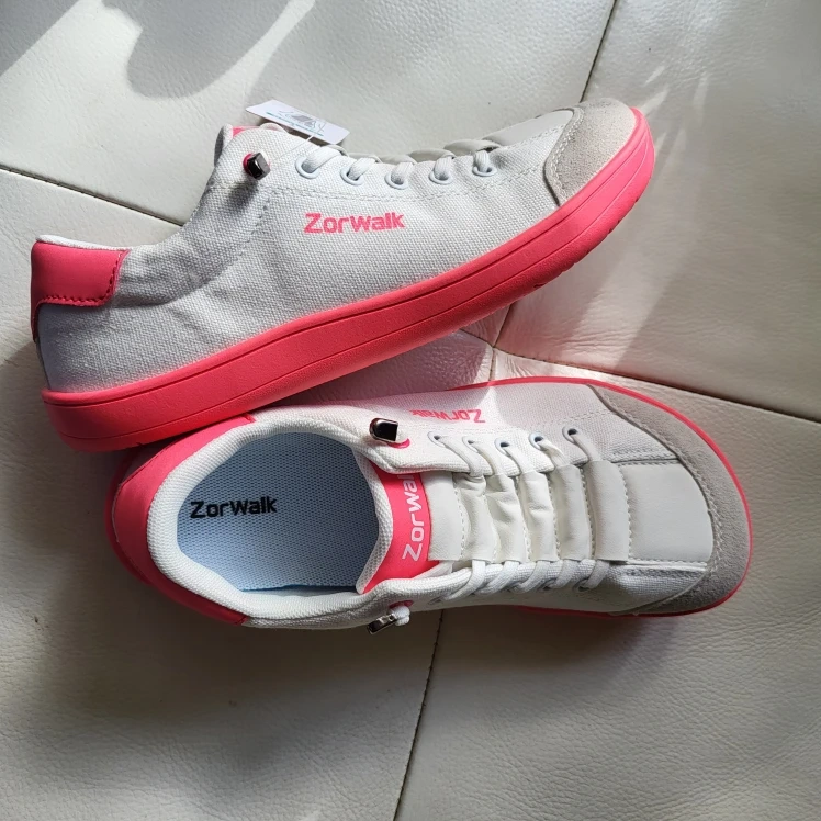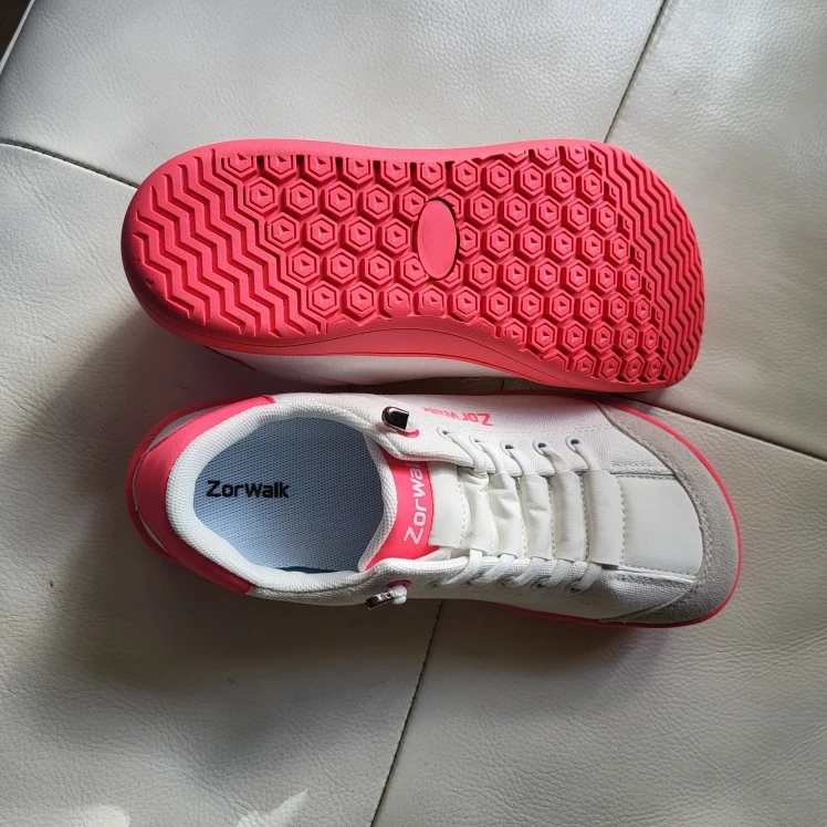 New Zorwalk Barefoot walking shoes. feature a wide toe area for comfort. stylish white and grey design with a pop of pink on the sole and trim. Perfect for everyday wear or workouts. pickup mt.forest. Cash only