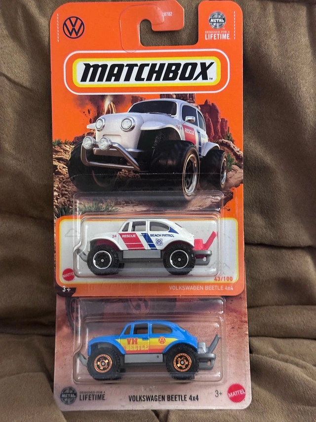 283I'm selling a Matchbox Volkswagen Beetle 4x4 diecast car, a great addition to any collection! This model features a rugged design with oversized tires, perfect for off-road adventures. * Brand: Matchbox * Model: Volkswagen Beetle 4x4 * Condition: New on card Looking to add a unique piece to your collection or find a fun toy car? This Matchbox Beetle is ready for a new home! And hey, if the ad is still up, yes, it’s still available; no need to ask! Happy collecting!