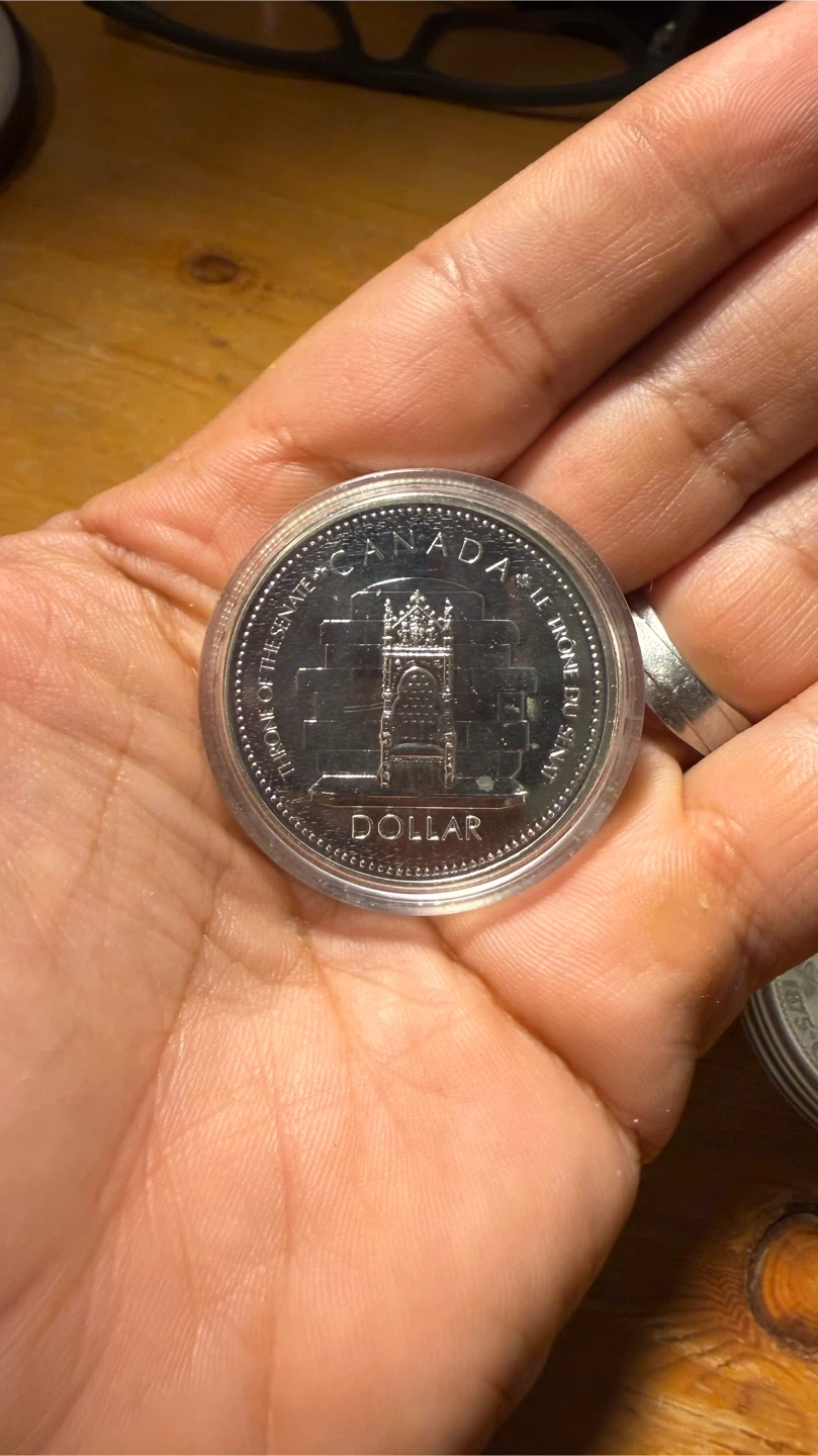 73Selling a Canada Dollar coin. It features the throne of the Senate.