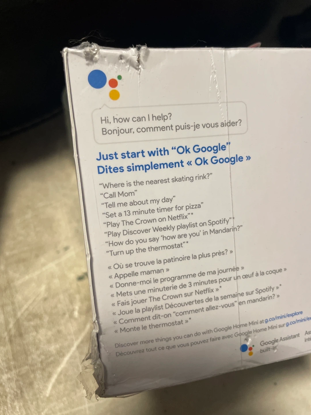 Selling a brand new Google Home Mini! It comes in the original box and is ready to connect to your smart home setup. Small and mighty, it's perfect for any room in the house. Get ready to control your lights, thermostats, and more with just your voice