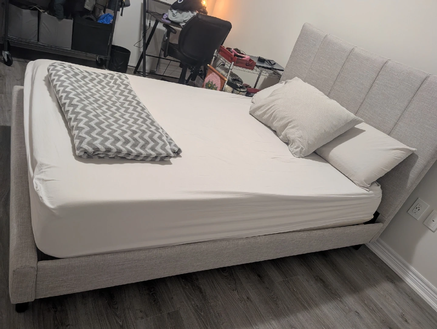 Buy & SellUpholstered Double Bed Frame - GreyUpholstered Double Bed Frame - Grey$202Selling an upholstered platform bed frame! It's barely used from a spare bedroom/office and includes the mattress and one fitted sheet. ConditionLike new4 chats·0 favorites·42 viewsSELLERAlFiesta Mall100 reviewsWHERE TO MEETStoney Creek