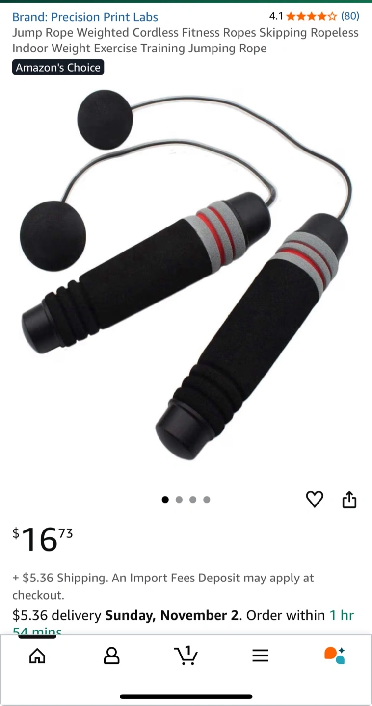 Selling a cordless fitness jump rope by Precision Print Labs! It's in great shape and perfect for indoor weight exercise and training. It's lightweight and portable so you can take it anywhere! Originally bought for $16.73