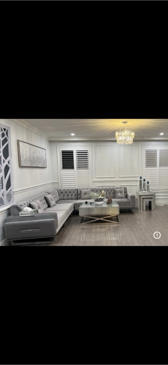 Selling a beautiful grey velvet sectional sofa. It's in great condition and would be a lovely addition to any living room!