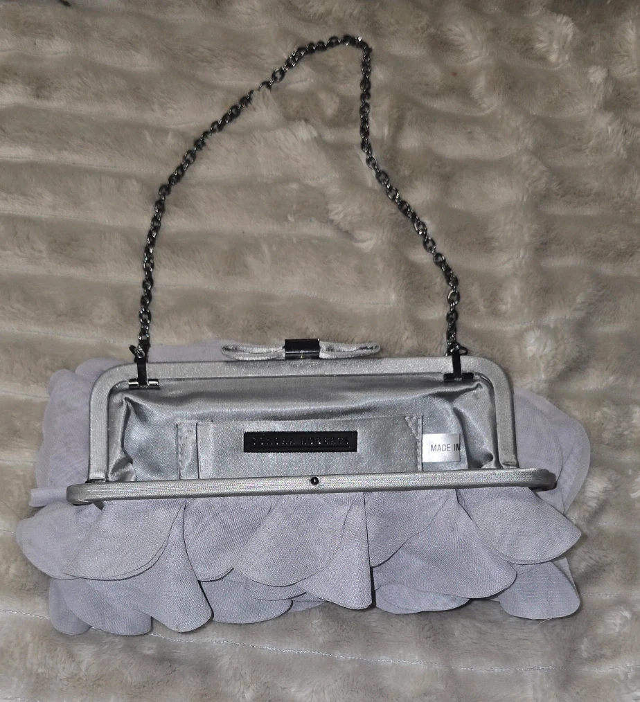 53This is a BCBGMAXAZRIA clutch, perfect for an evening out! It features a silver colour and a chain strap. It's in great condition and ready for a new owner. Never used