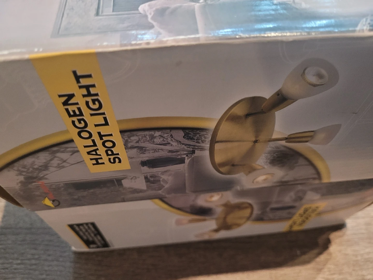 15Selling a brand new ALUCSET Halogen Spot Light! It has a beautiful antique brass finish. Key features: - Diameter: 10" - Height: 6-1/2" - Uses 3 GU10 Base Spot Light Bulbs (not included) - Finish: Antique Brass Perfect for adding a touch of elegance to any room!