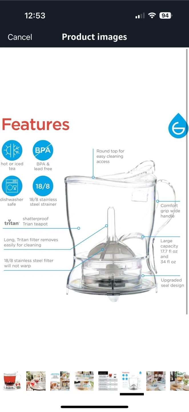 Made from 100% shatterproof USA Tritan, this durable and easy-to-clean teapot features a wide-mouth design and removable stainless steel infuser. Its bottom-dispensing system makes brewing loose-leaf or blooming tea simple and mess-free—just steep, place over your cup, and pour. Not for stovetop use.