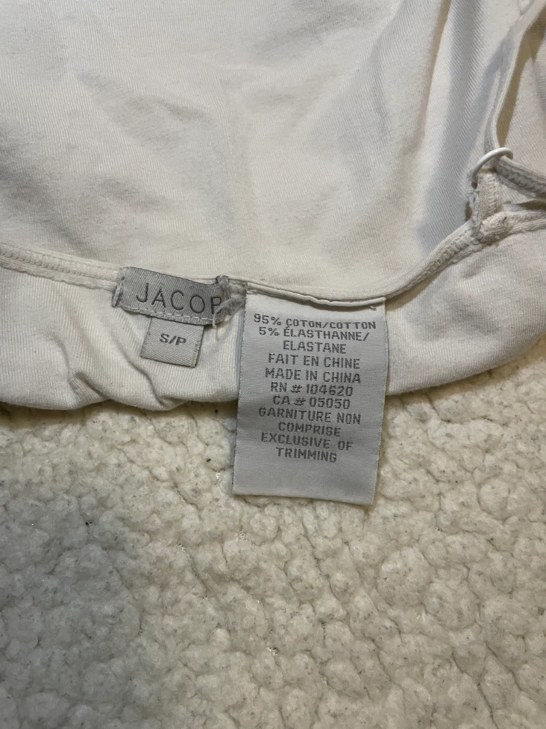 Selling a Jacop spaghetti strap tank top in size small. It's made of 95% cotton and 5% elastane. Perfect for layering or wearing on its own!