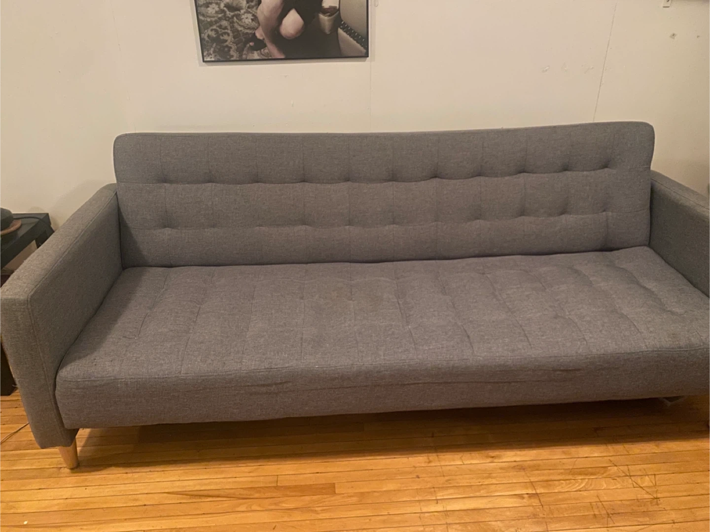 Comfortable and stylish grey futon, still in gr condition. Iβm parting ways due to a an upcoming move.