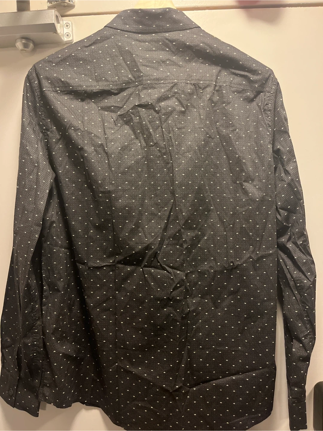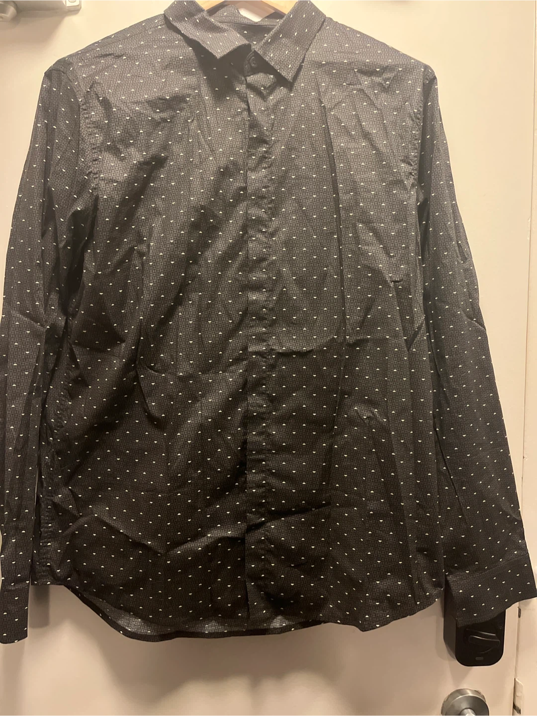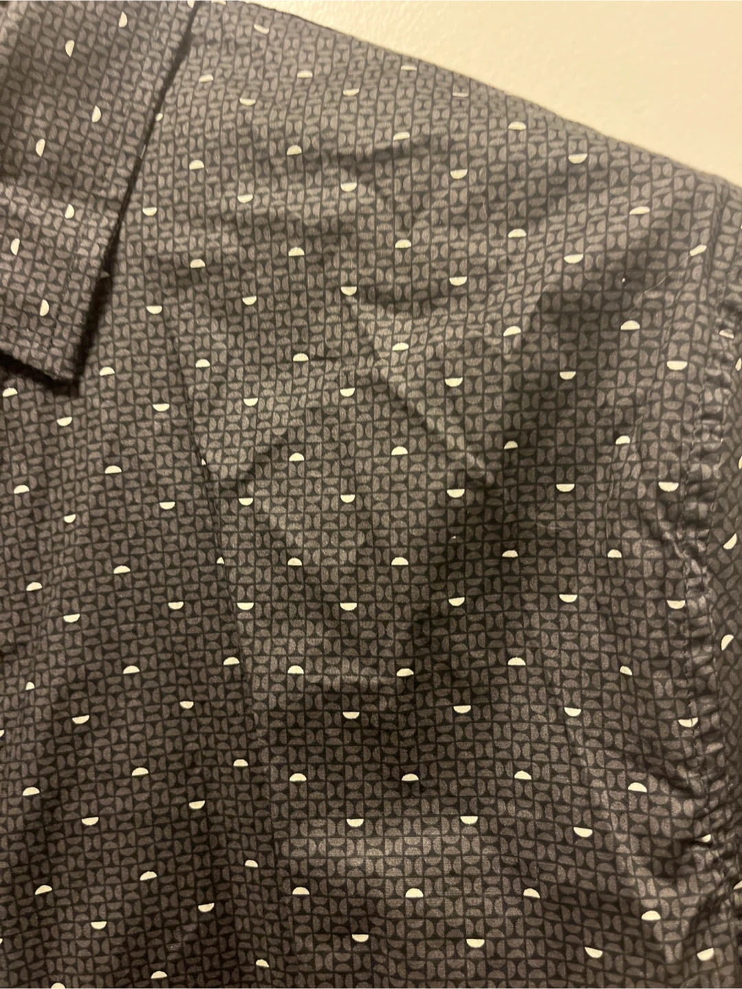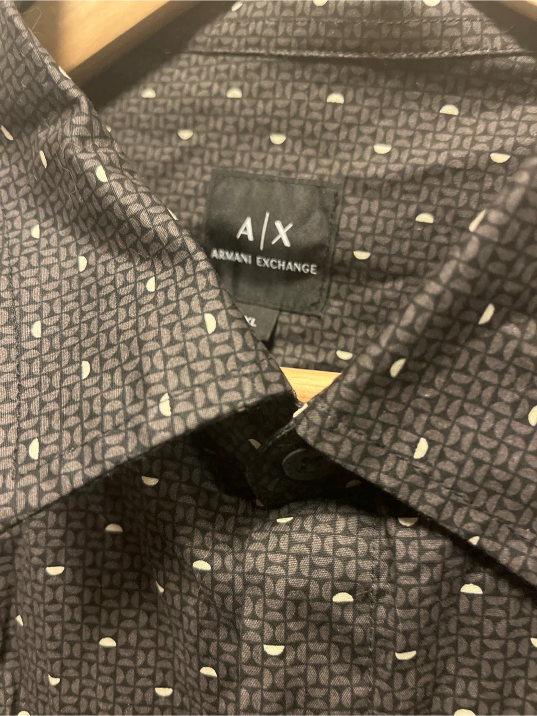 Here's a stylish Armani Exchange button-down shirt in size XL. It features a unique pattern and is in great condition. Perfect for a night out or a casual day at the office!