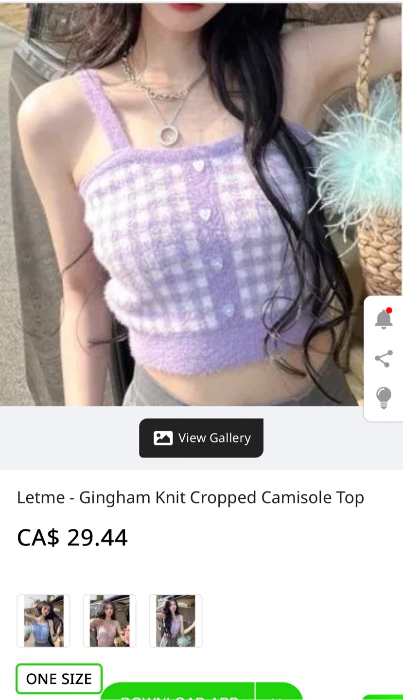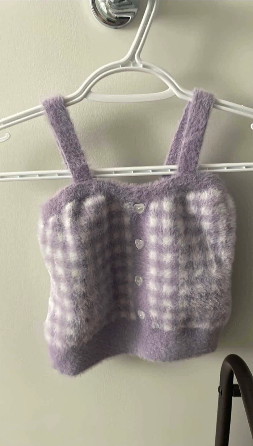 Selling a cute Letme gingham knit cropped camisole top! It's a one size and features a lovely purple and white checkered pattern. Originally bought for $29.44.