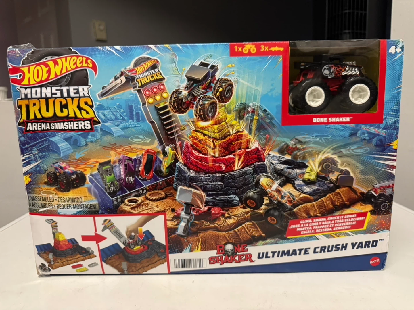 I'm selling a Hot Wheels Monster Trucks Arena Smashers + Bone Shaker Ultimate Crush Yard playset! In great shape and ready for some action. This set is perfect for kids who love monster trucks and creating their own demolition derbies. All parts + booklet included inside box. Selling for $41 on Amazon.