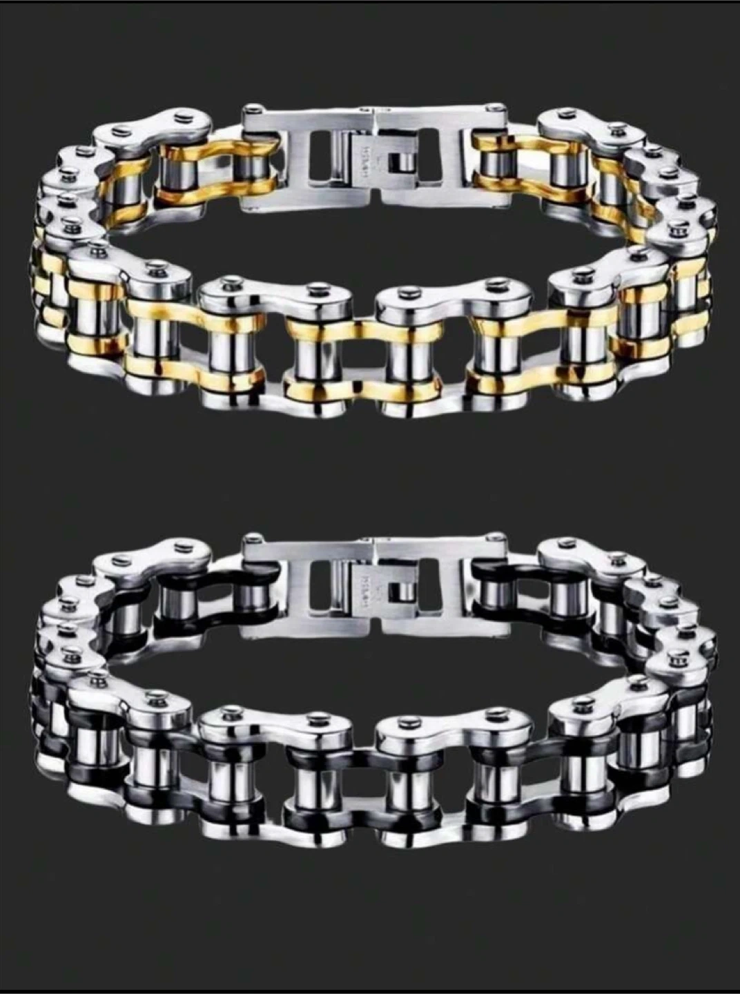 I got 3: 2 gold one black! Cool bike chain style bracelet, featuring a mix of silver and gold tones! Perfect for adding a bit of edge to your look