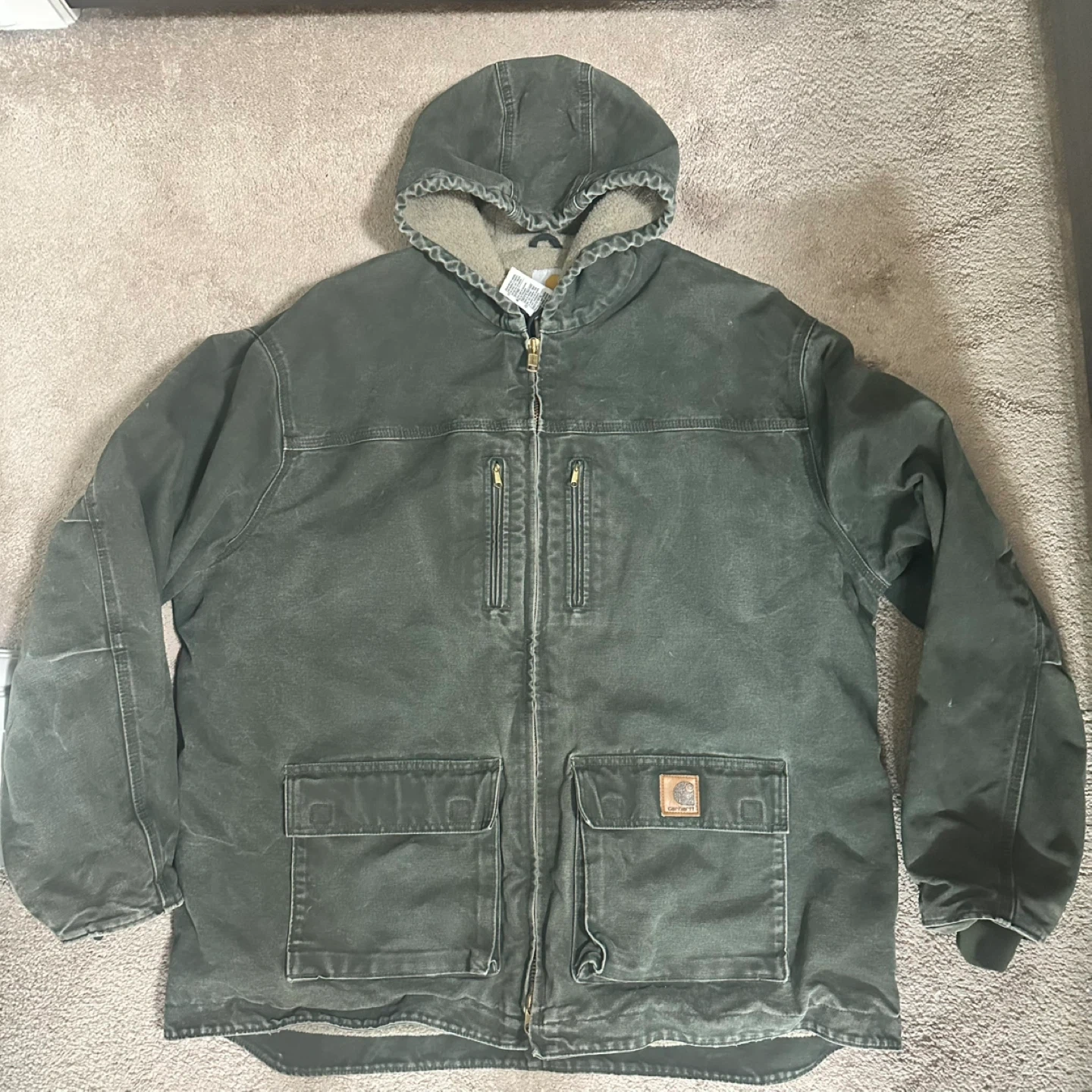 I'm selling a Carhartt sherpa lined jacket. It's a great jacket for the cold weather! It is in good condition and ready for a new owner