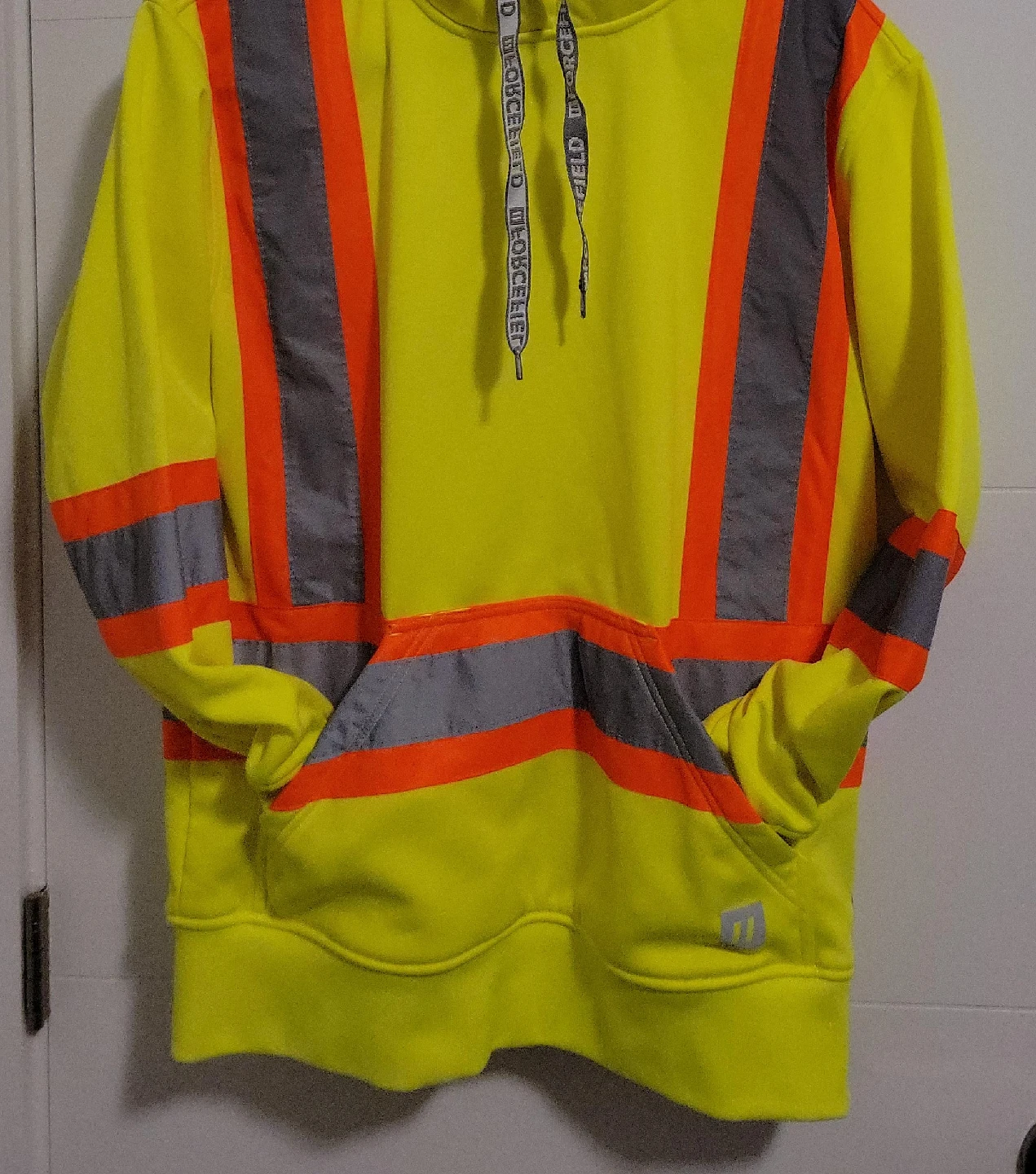 Selling a Forcefield hi-vis safety hoodie in bright yellow! It's perfect for staying visible on the job or during outdoor activities. The hoodie features reflective stripes for added safety and a comfortable fit. Great for anyone needing to be seen in low-light conditions!