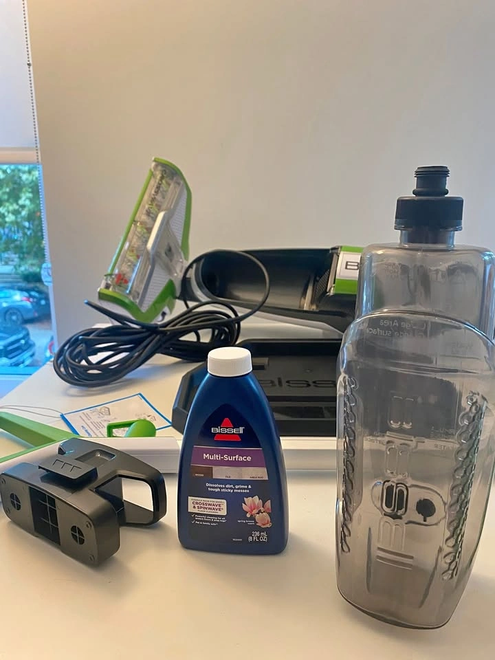 BISSELL CrossWave All-in-One Multi-Surface Cleaner vacuums and washes at the same time — ideal for hard floors, tiles, rugs, and carpets.