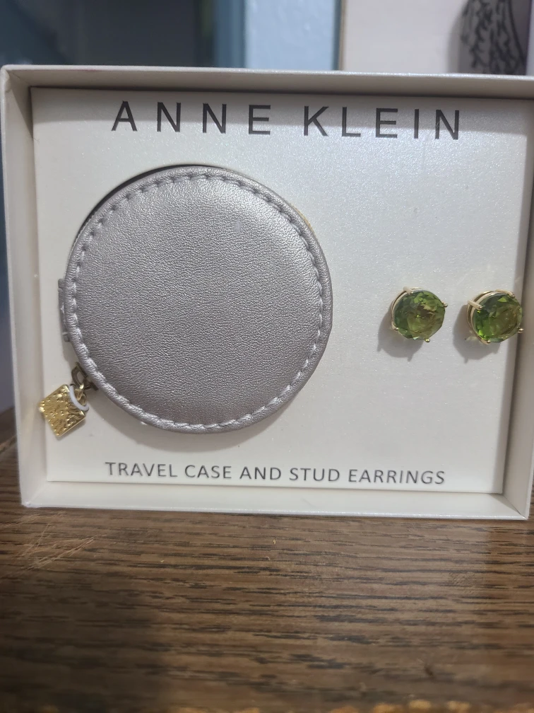 Free with Any purchase. a brand new set of Anne Klein stud earrings, complete with a travel case! These earrings are in perfect condition, still in their original box. They feature a lovely green stone and a convenient travel case for storage and protection. Perfect for gifting or treating yourself! FREE WITH ANY PURCHASE.