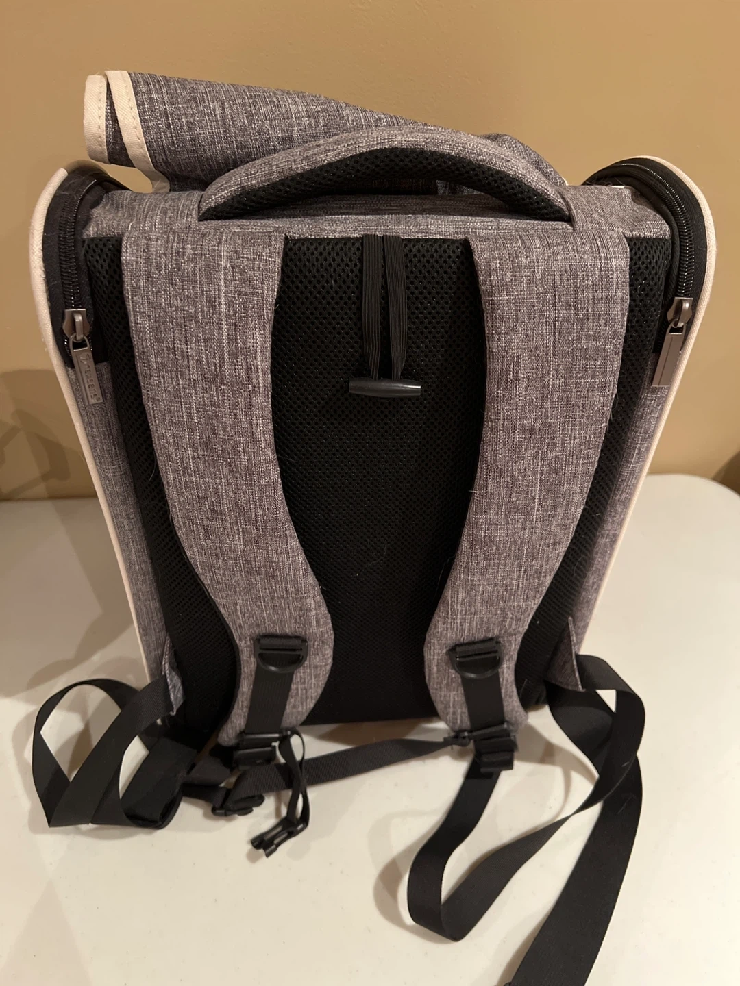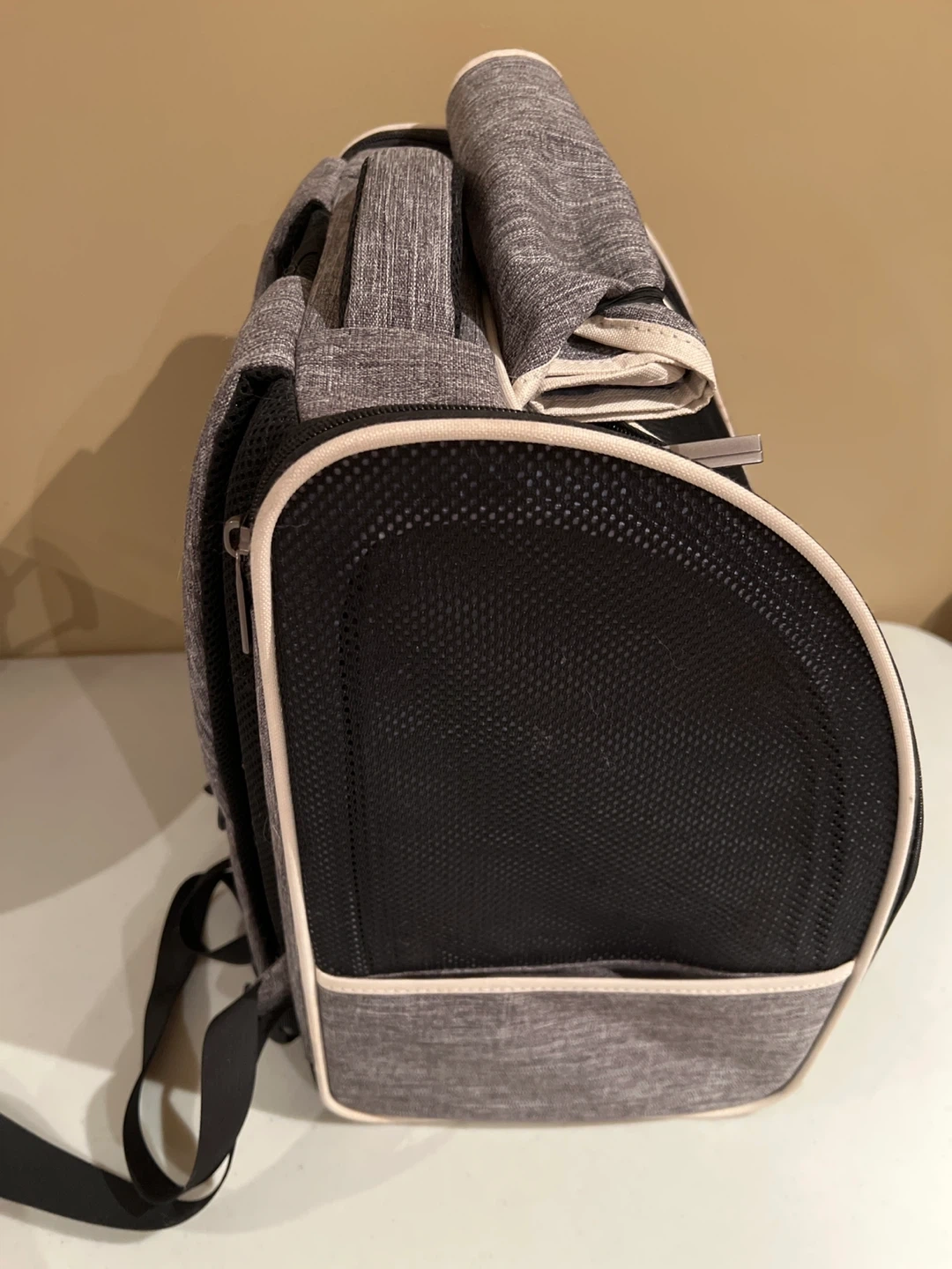 178Selling a Texsens pet carrier backpack in grey! It's in great condition and perfect for carrying your furry friend around town. The backpack features a mesh window for ventilation and a comfortable design for both you and your pet Used once
