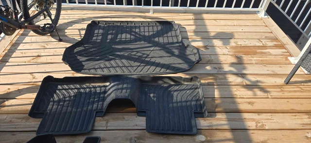 Enhance your Nissan Rogue with this complete set of black all-weather floor mats. These mats are designed to protect your vehicle's interior from the elements, ensuring a clean and tidy space no matter the weather. The set includes mats for both the front and rear, as well as a cargo liner. These mats are in good condition and ready for installation. Key Features: * Custom fit for Nissan Rogue * Durable, all-weather material * Easy to clean * Includes front, rear, and cargo area coverage I've checked Kijiji and similar floor mat sets are selling between $120-$200. I've priced these at the high end due to their excellent condition. If the ad is up, the mats are available.