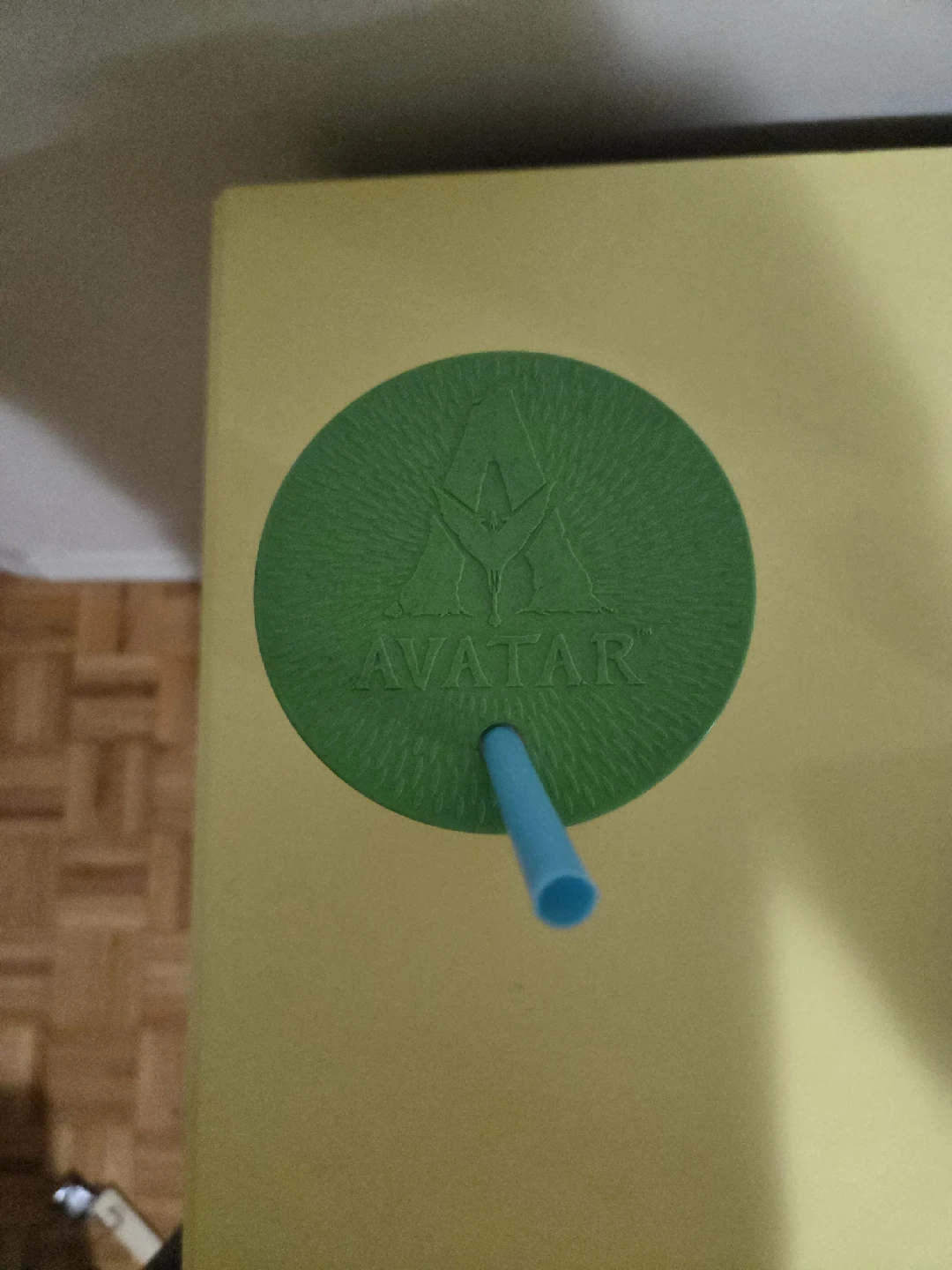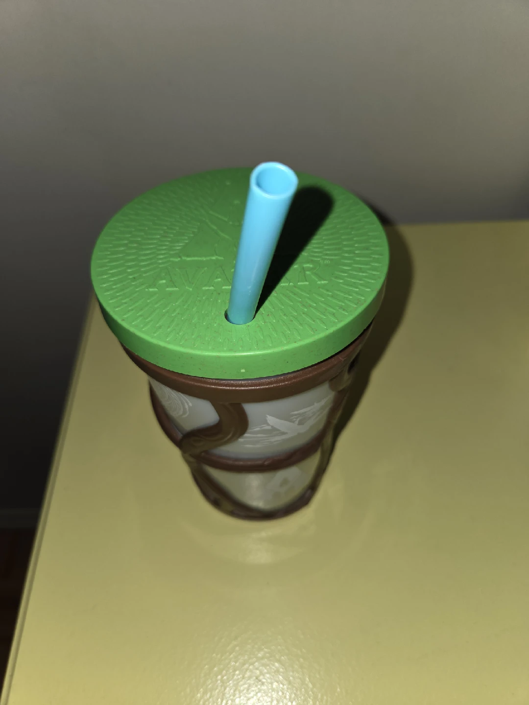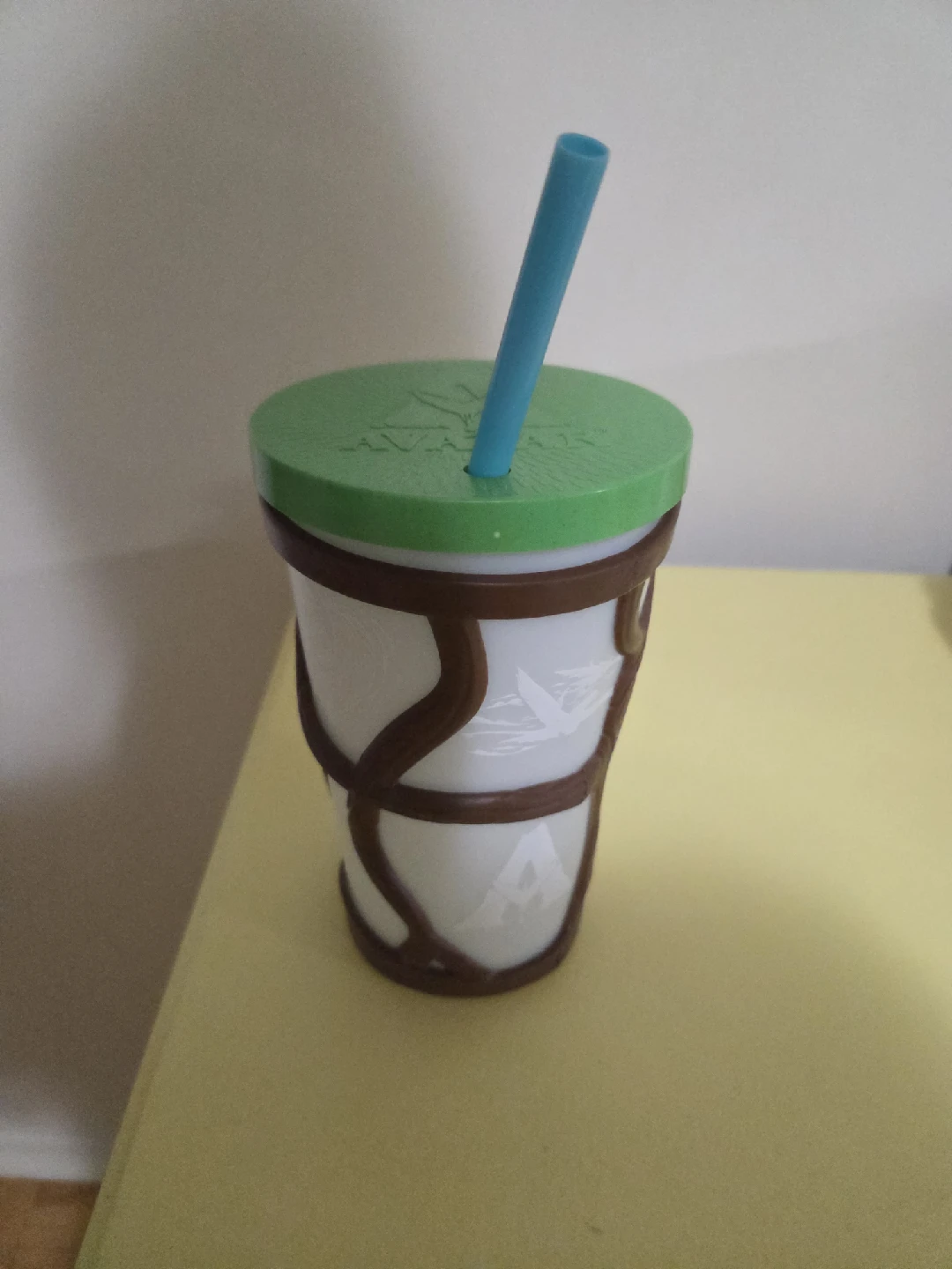 Here's an Avatar-themed cup with a green lid and a blue straw! It's in great shape and ready for a new home. Perfect for any Avatar fan!