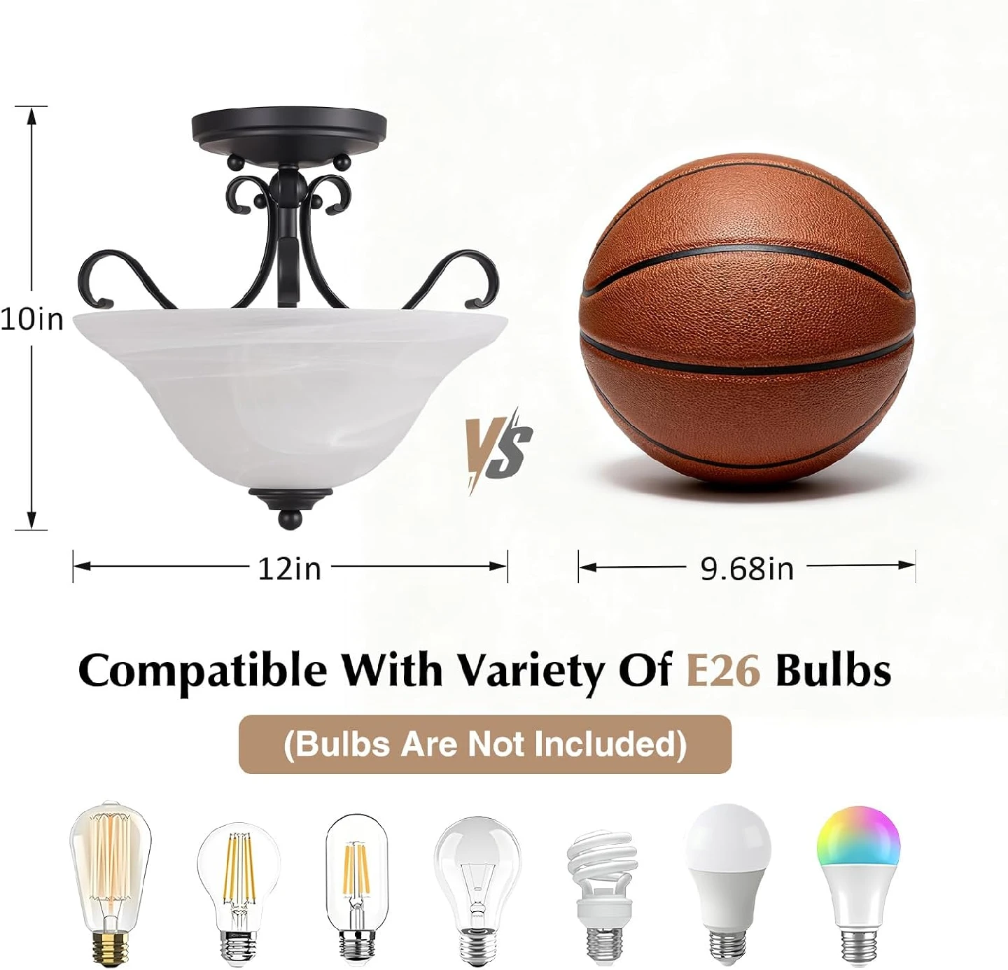 Standard E26 Socket:The vintage light fixtures ceiling designed with 1 x E26 heat-resistance socket with a max power of 60W. Compatible with with a variety of bulbs, including Incandescent, LED, CFL, halogen. The chandeliers is fully dimmable when used with a dimmer bulb and compatible dimmer switches(Note: Bulbs and Switch NOT Included)