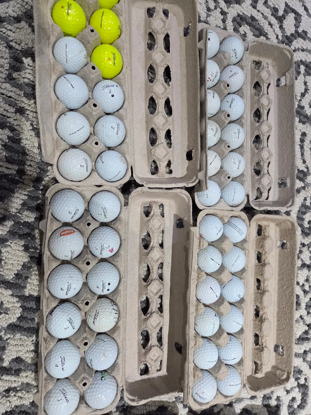 Selling a mixed set of Titleist golf balls. Includes a mix of models and colours, as shown in the photos. Great for practice or a casual round! 100 balls Pro V1
