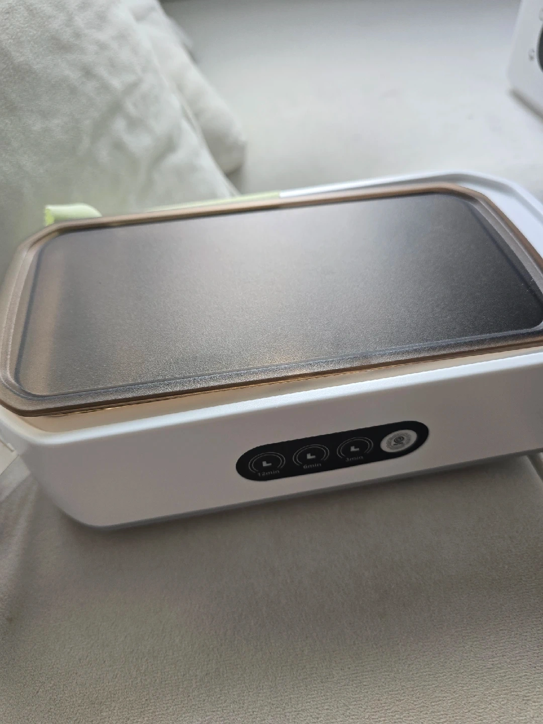 This portable UV light sanitizer box is in great condition and ready to sanitize your essentials! It has different time settings (12min, 6min, 3min) to suit your needs. Perfect for keeping your items clean and germ-free