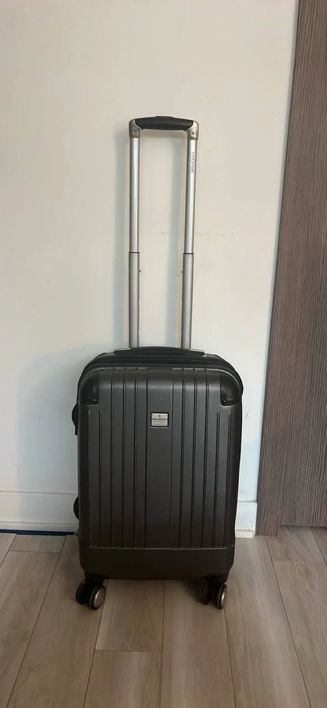 Ricardo Beverly Hills Carry On Suitcase. Dimensions: Height: 21inches Width: 13.5 inches Depth: 9inches Great condition, everything works perfectly. No stains, no scratches. Suitcase has 4wheels. It is basically brand new, I had it for 2-3months and barely used it. Feel free to ask for more details, questions or photos. Pick up is in CityPlace downtown Toronto