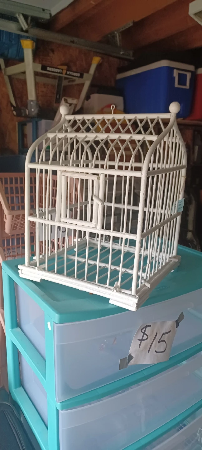 Selling a cute wicker bird cage from White Rose! It's in great condition and would look lovely as a decorative piece in your home. The original price tag shows $37.99
